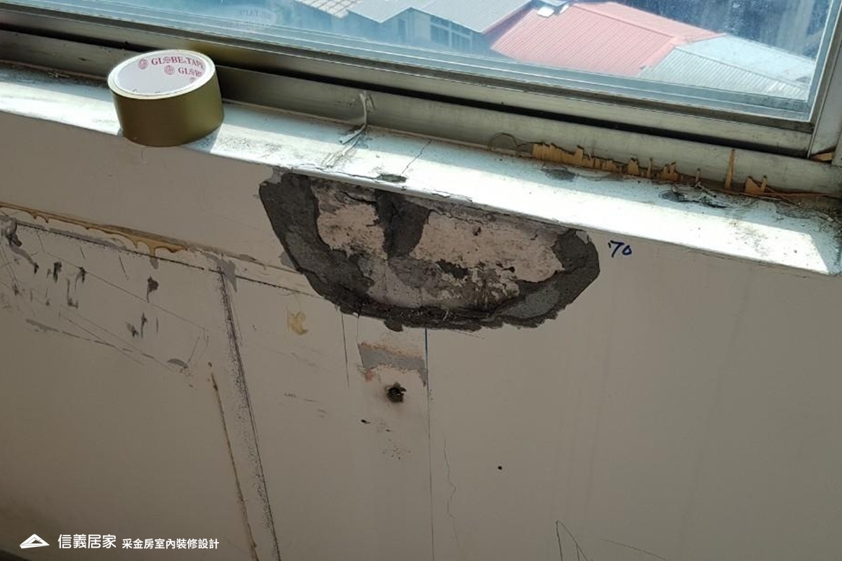 好不容易買了房子,卻發現屋子有滲水問題,怎麼辦?又或是房子住久了,難免在天花或牆壁上看到滲水問題,該怎麼一勞永逸呢?這時就必須用到滲水工法口訣:「內外夾攻大力丸」,聽起來是不是很熟悉啊? 今天專家就帶你真實場刊!這間已有36年屋齡的中古屋,以為只有陽台有滲水問題,沒想到設計師一拆牆面才發現屋內窗框處的滲水也十分嚴重,判斷應為外牆磁磚破裂加上長久日晒雨淋導致外牆防水層也已不敷使用。因此,最佳解決方式就是內牆及外牆同時做處理。