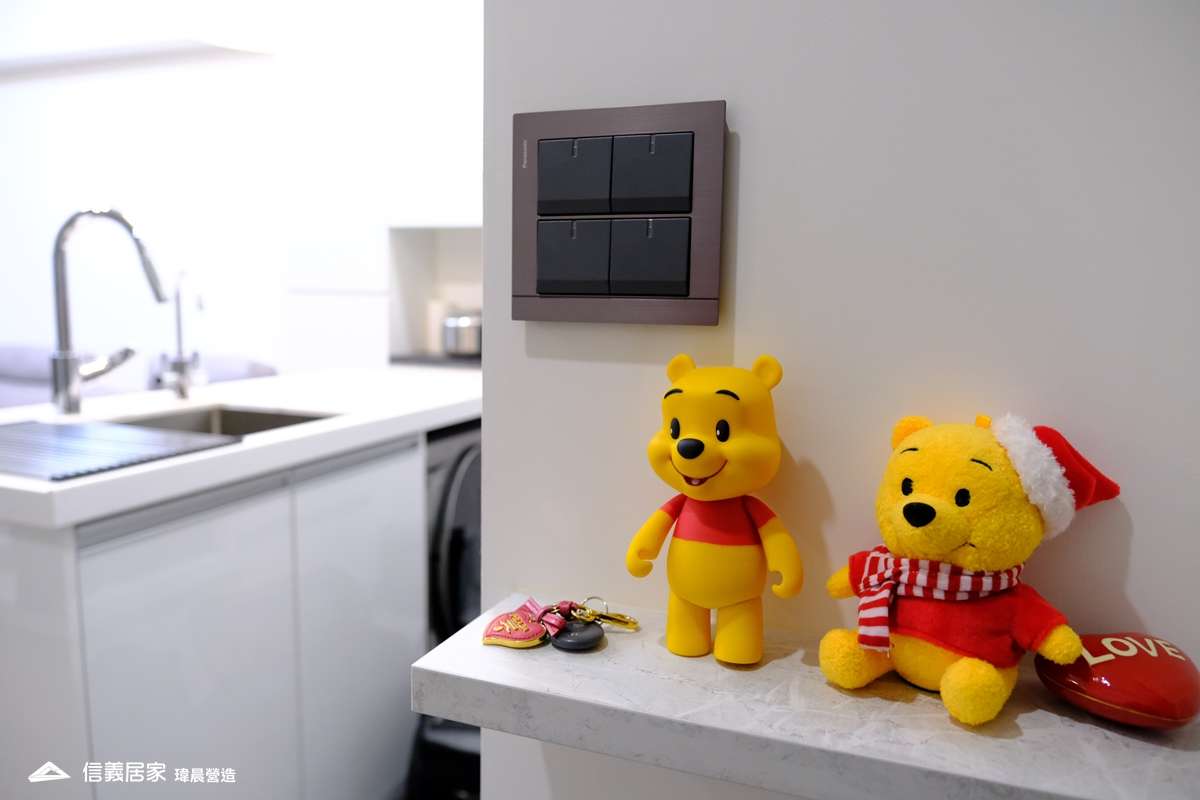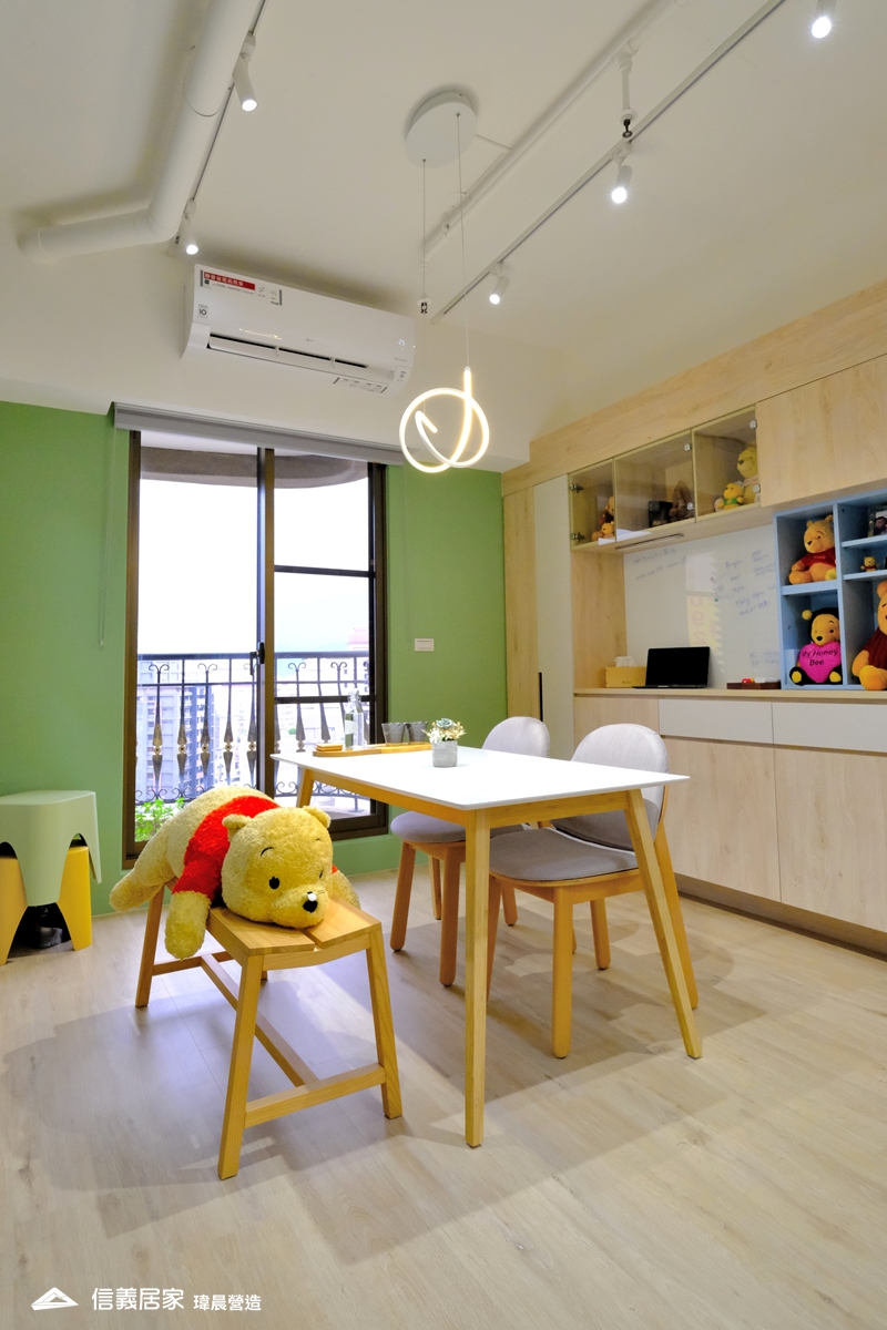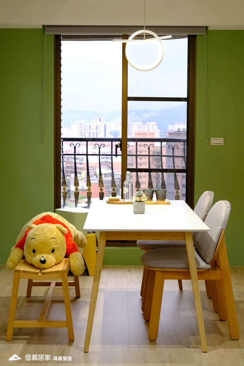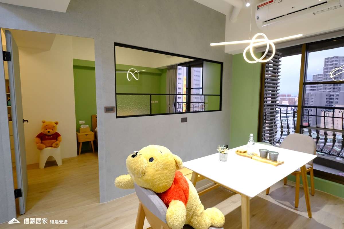 小坪數空間不僅客廳、臥室和中島廚房一應俱全,還能擁有一整面專屬熊熊的展示牆,未免太夢幻了吧!如何使看似難駕馭的明亮的草綠色與木紋系統櫃精準?來一探究竟完美空間的黃金比例!
