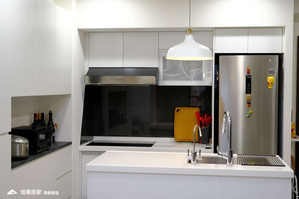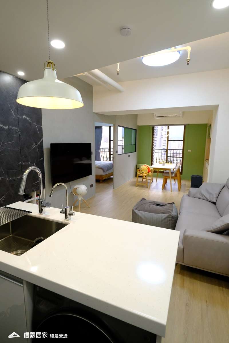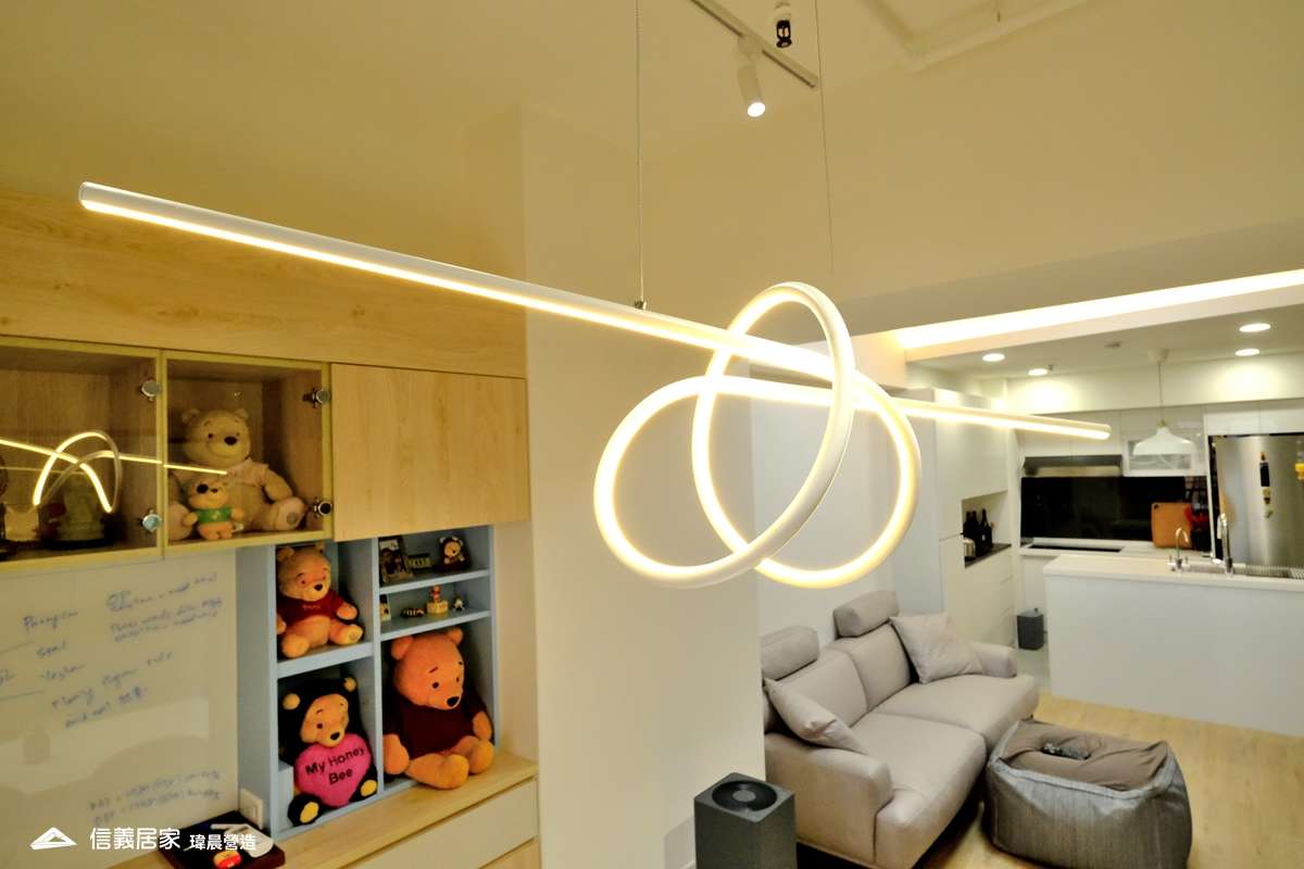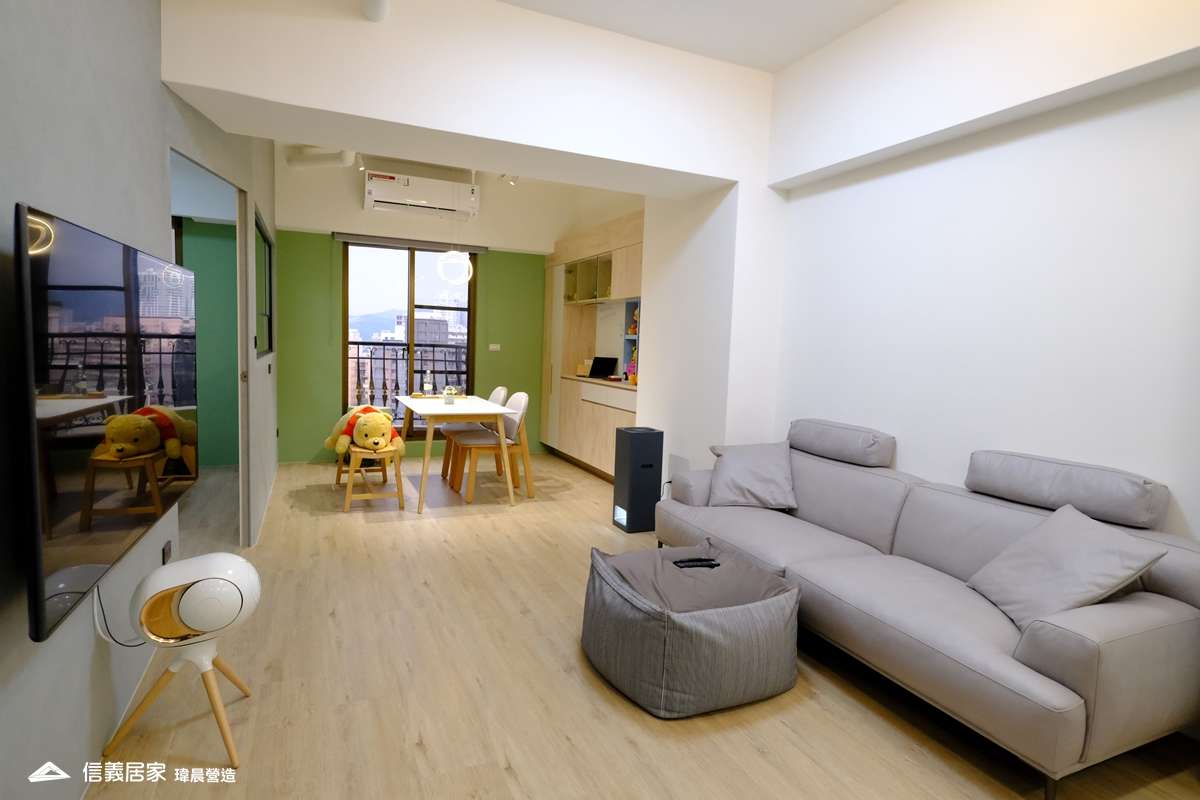 小坪數空間不僅客廳、臥室和中島廚房一應俱全,還能擁有一整面專屬熊熊的展示牆,未免太夢幻了吧!如何使看似難駕馭的明亮的草綠色與木紋系統櫃精準?來一探究竟完美空間的黃金比例!