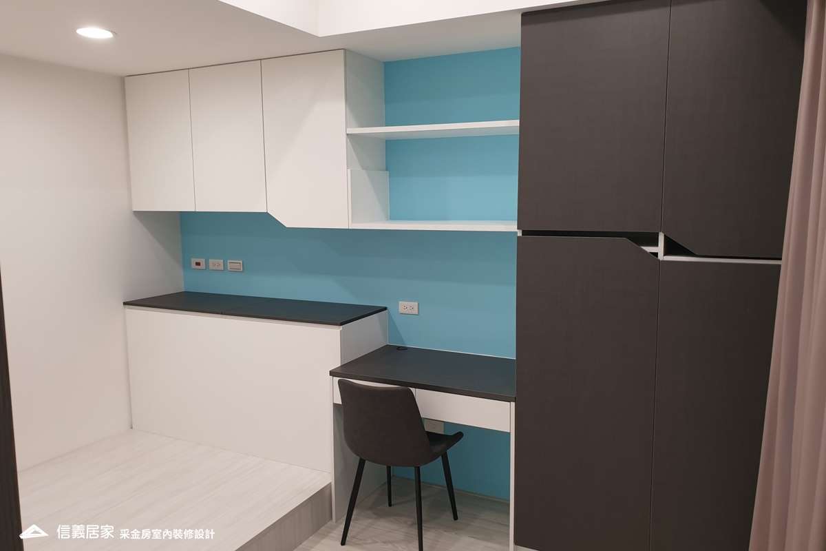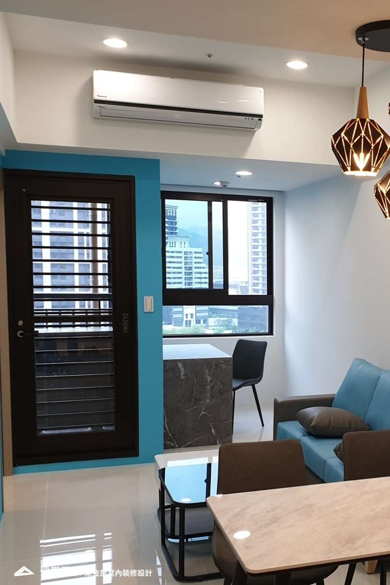 青色代表了希望與安慰的顏色,在童話《青鳥(Blue Bird)》中也意味著人們在内心深處對美好的追求與嚮往。本案單身屋主想要一間藍色小屋,采金房設計團隊在腦海中浮現的就是一處可以讓身心靈都得到平靜及紓解壓力的空間。在預算有限下,重點處運用系統櫥櫃整合收納機能,其他則採用色彩及現成家具搭配出「幸福小屋」!