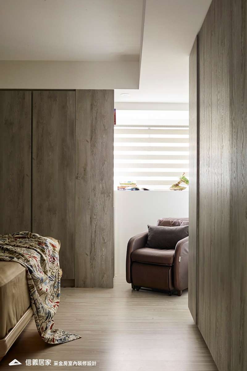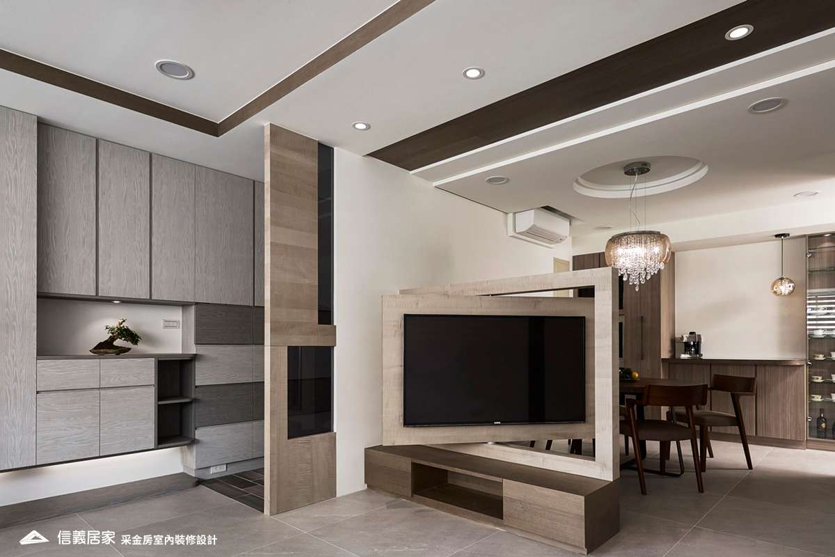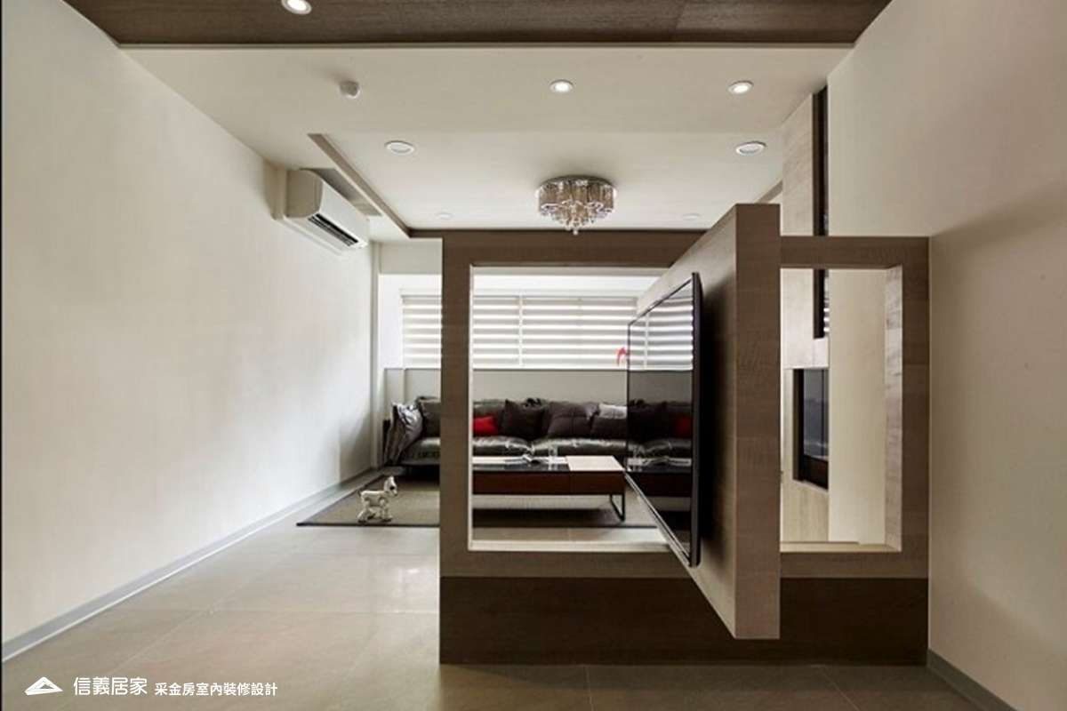 超過30年屋齡的華廈中古屋,公私領域比例不對,還沒有玄關、收納量不足等等問題,透過設計師巧思,運用旋轉電視牆,重新定義合理公私領域,呈現完美的「家」。