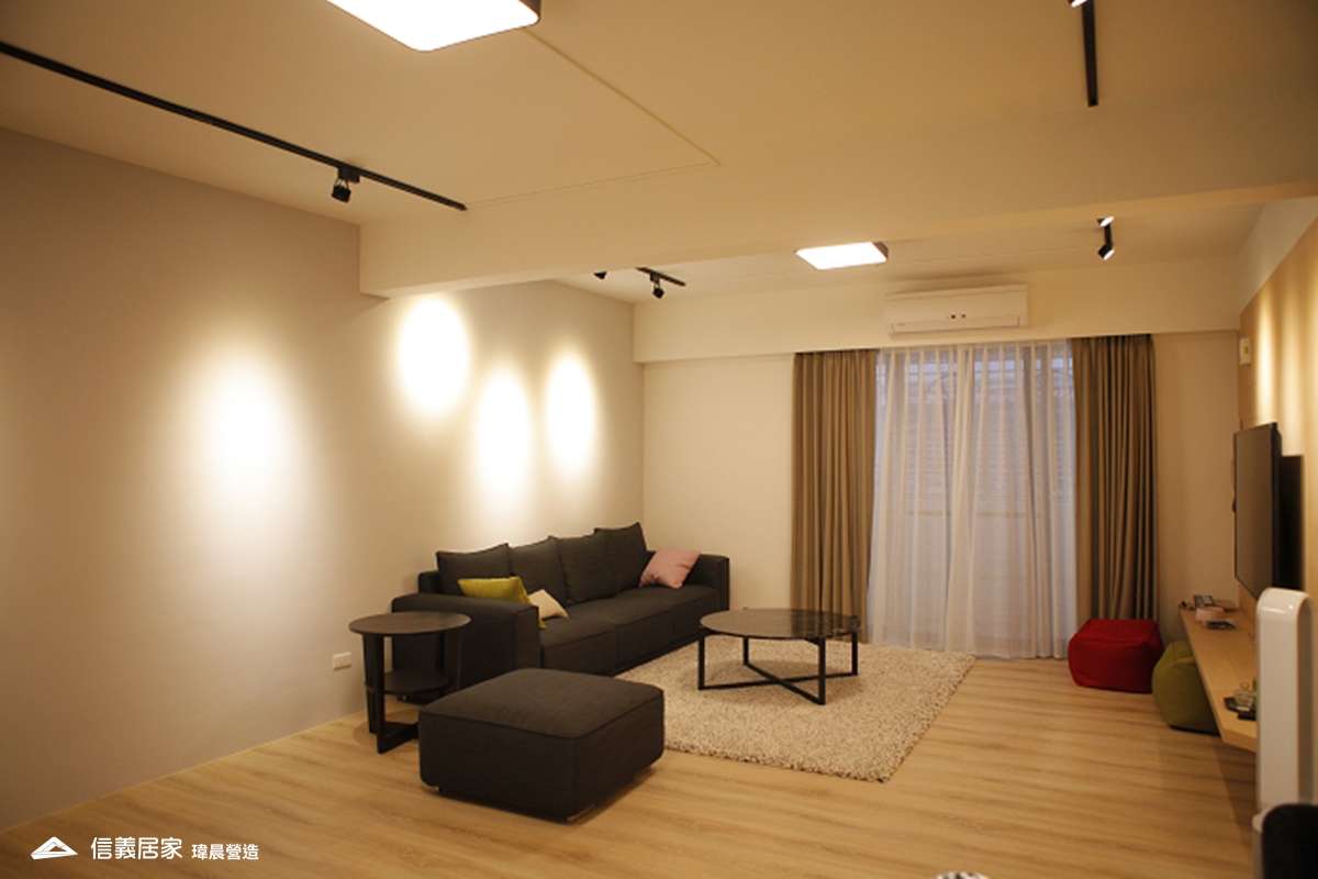屋主是信義房屋的經紀人,喜歡運動也喜歡跟家人朋友熱鬧聚會,這次裝修透過信義居家找到瑋晨來做規劃;設計師保留原屋自然採光充足的特色,設計風格則以屋主喜歡的簡約大方為主,並解決老屋管線老舊、地坪不平等問題。