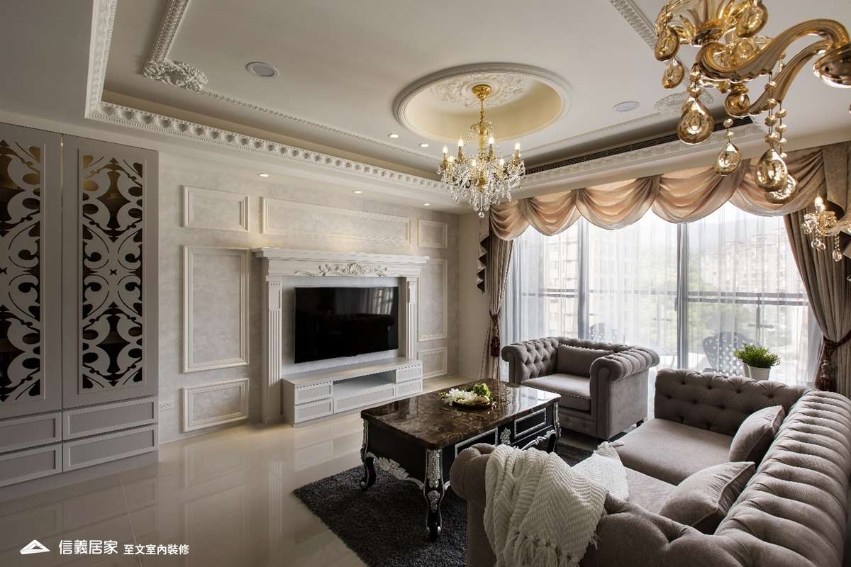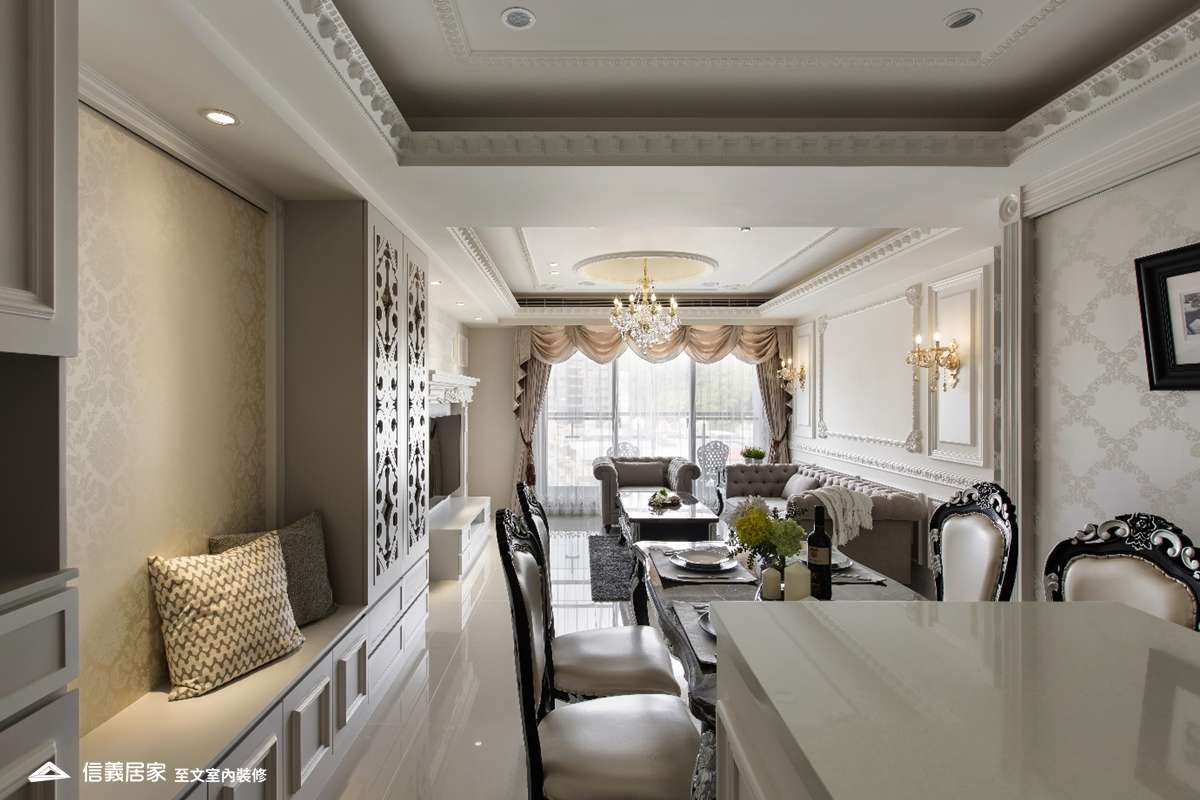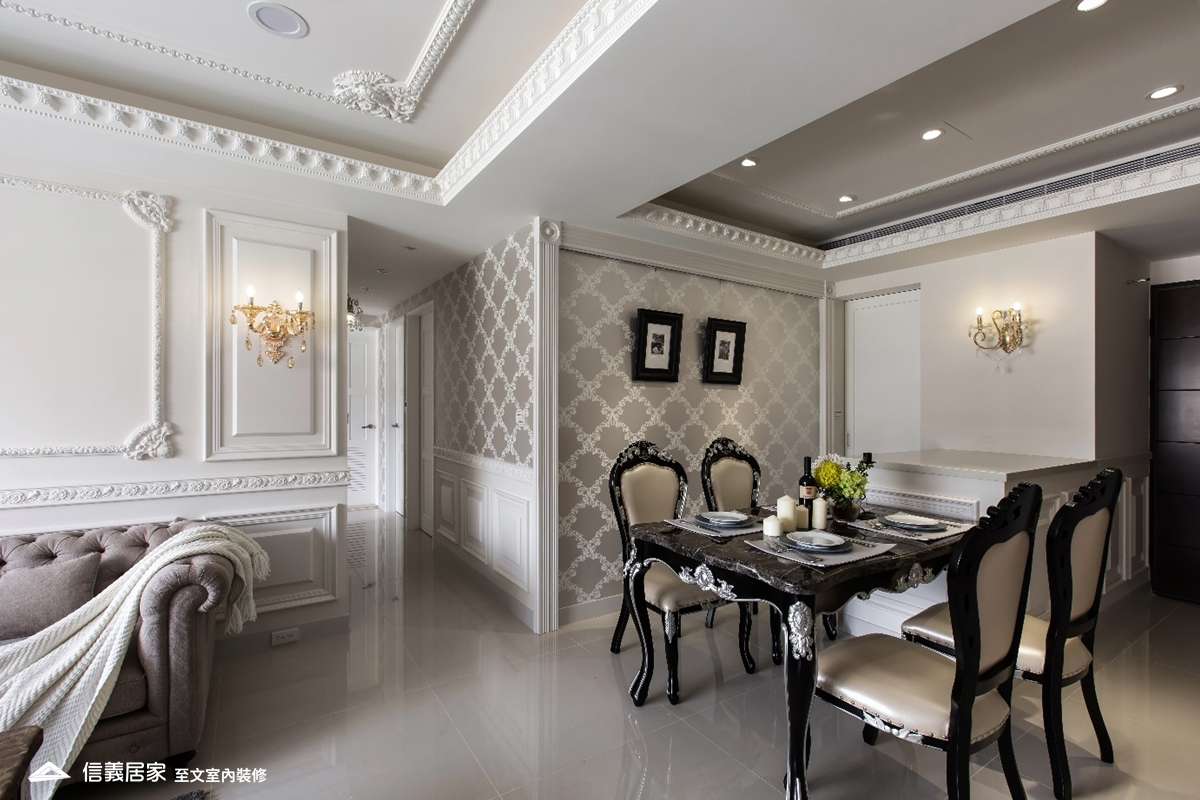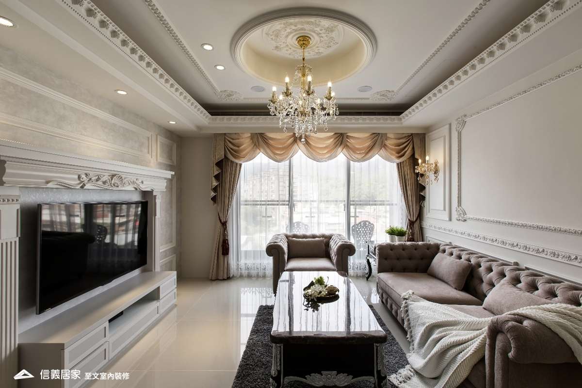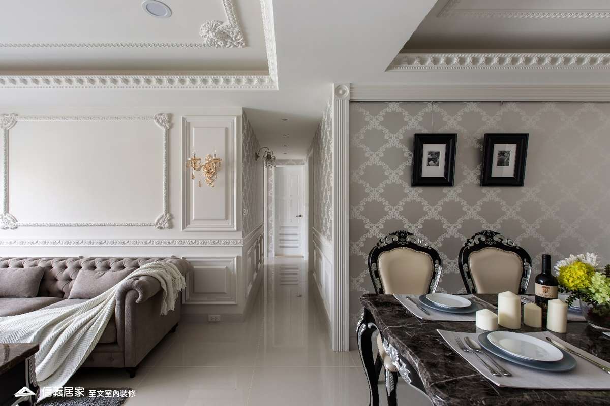 屋主喜歡華麗的古典風格,在格局與地磚不變動的情況下,至文室內設計運用柔和的淺色調作為基礎,將牆面與天花板依照一定的比例做線板設計,使整體空間感覺貴氣又優雅;次臥室也依居住者的喜好,打造不同設計風格、充滿專屬感。