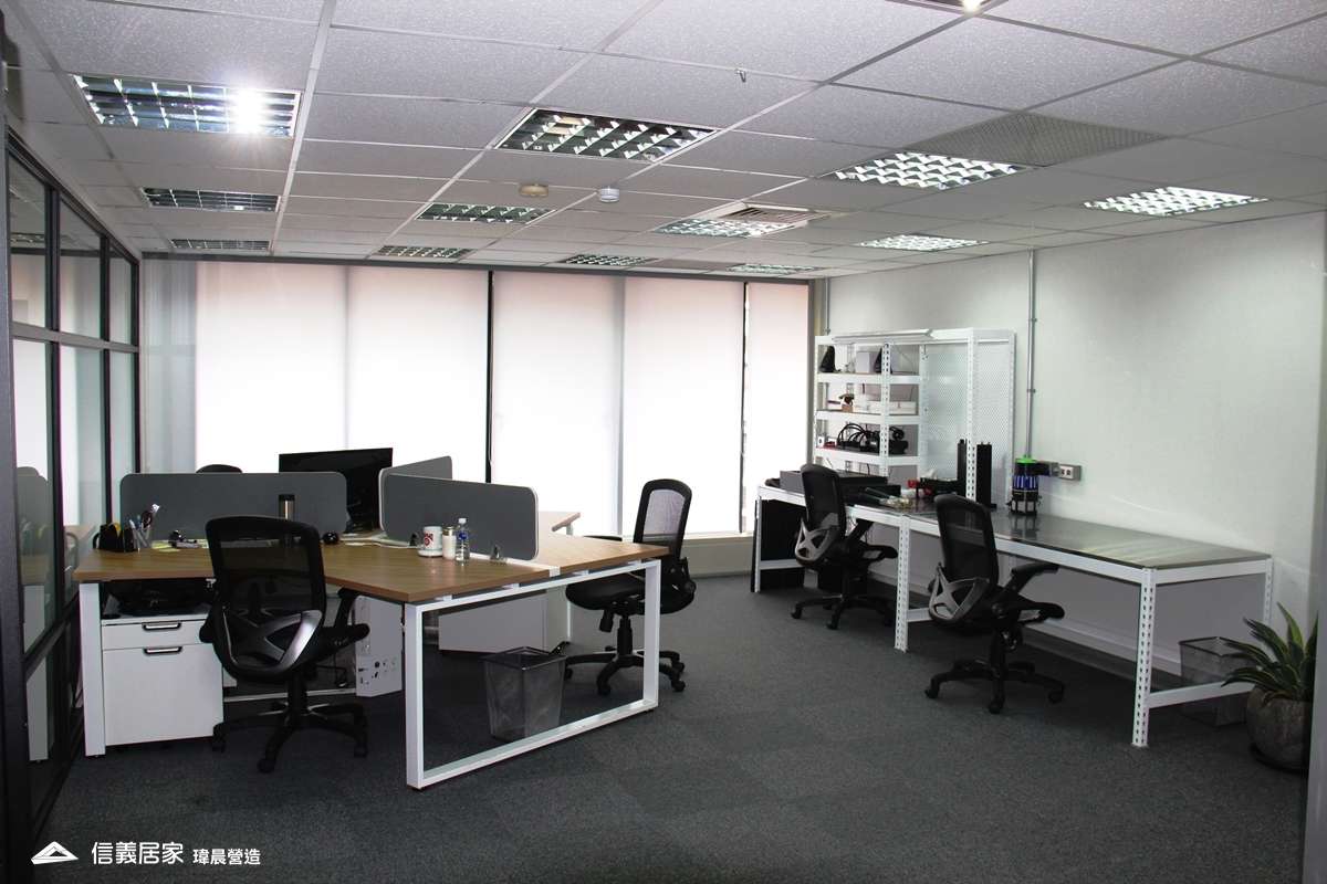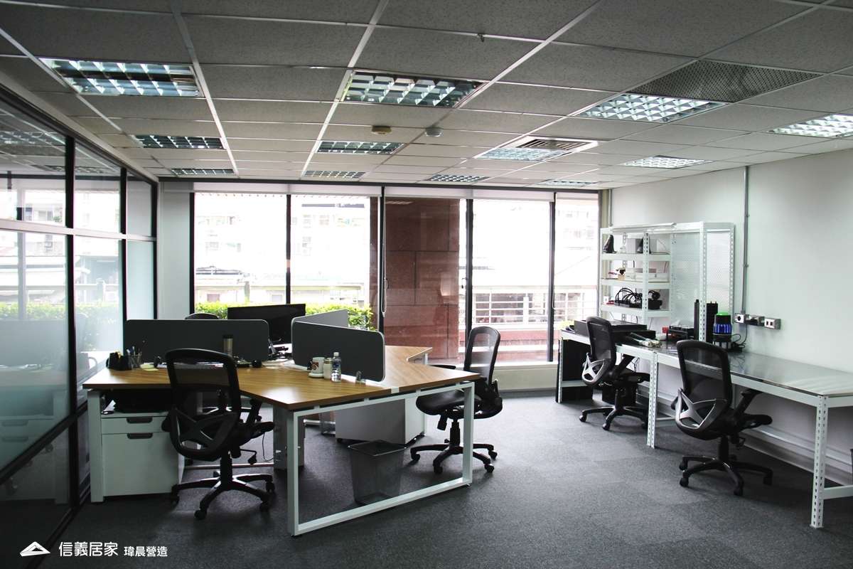 隔板過高的OA辦公家具、動線不良造成的空間浪費,讓原本辦公室讓人感到沉重。瑋晨大膽將閒置空間移除,並放大自然採光涼好的優點,打造出美式休閒辦公空間。