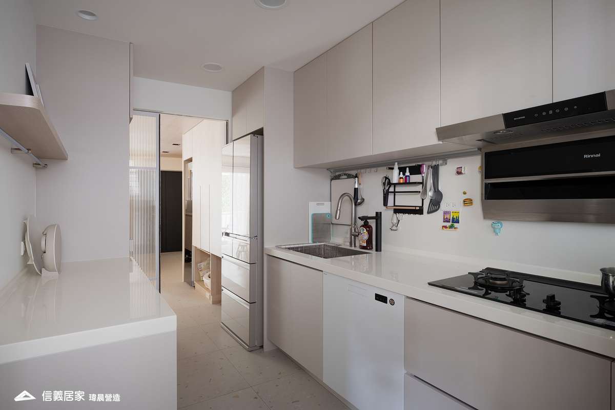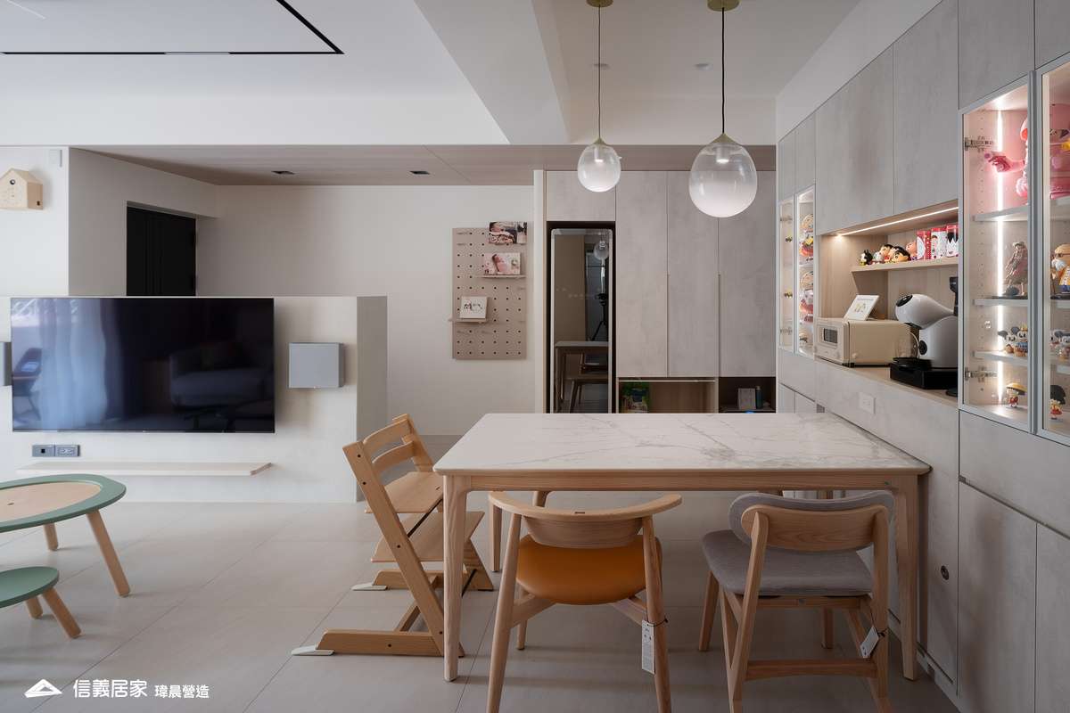 信義居家認證合作廠商瑋晨營造施工,設計風格注重實用與溫馨,旨在滿足屋主夫妻及幼兒的需求。屋主希望為孩子創造寬敞的活動空間,並融入可調整的家庭設施以陪伴成長。廚房、客廳及餐廳的設計皆突顯簡約與實用性,搭配專業的影音設備和高品質家具,營造出舒適的生活環境。並打造親子共融、放鬆愉悅的生活空間。