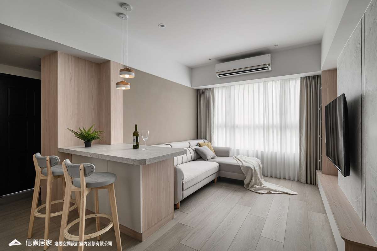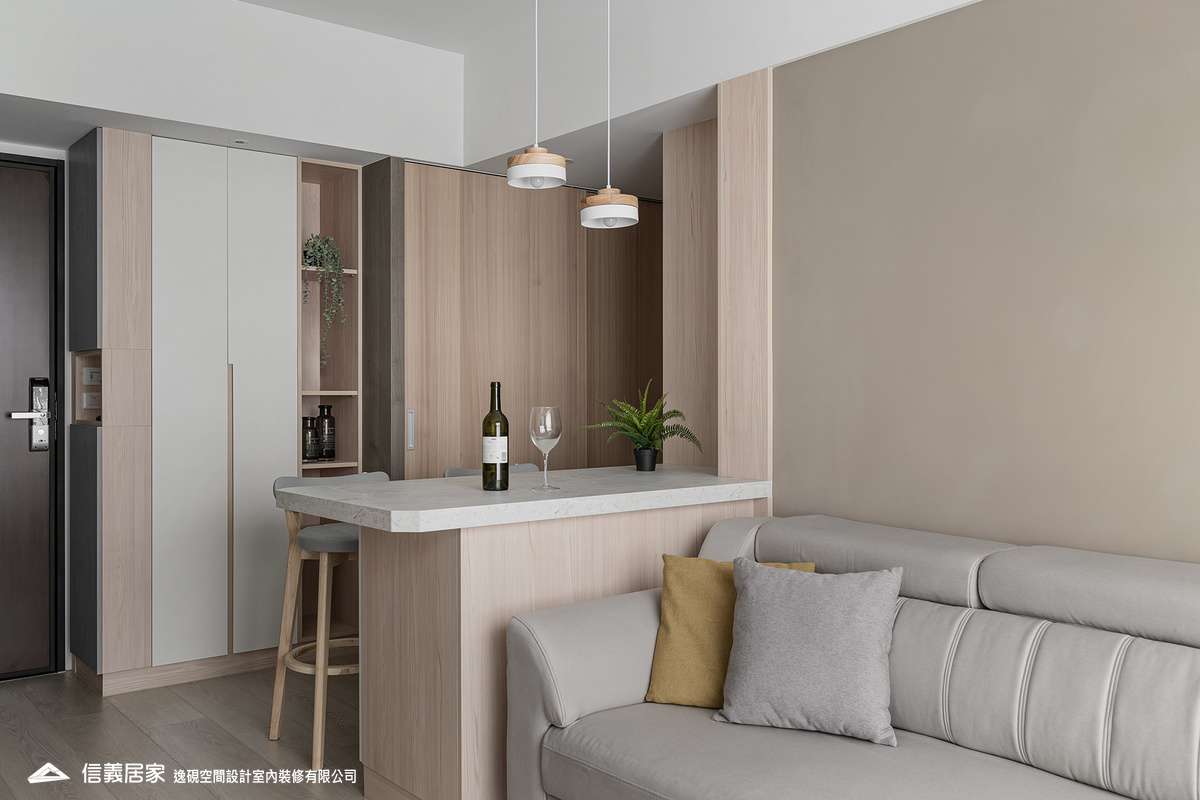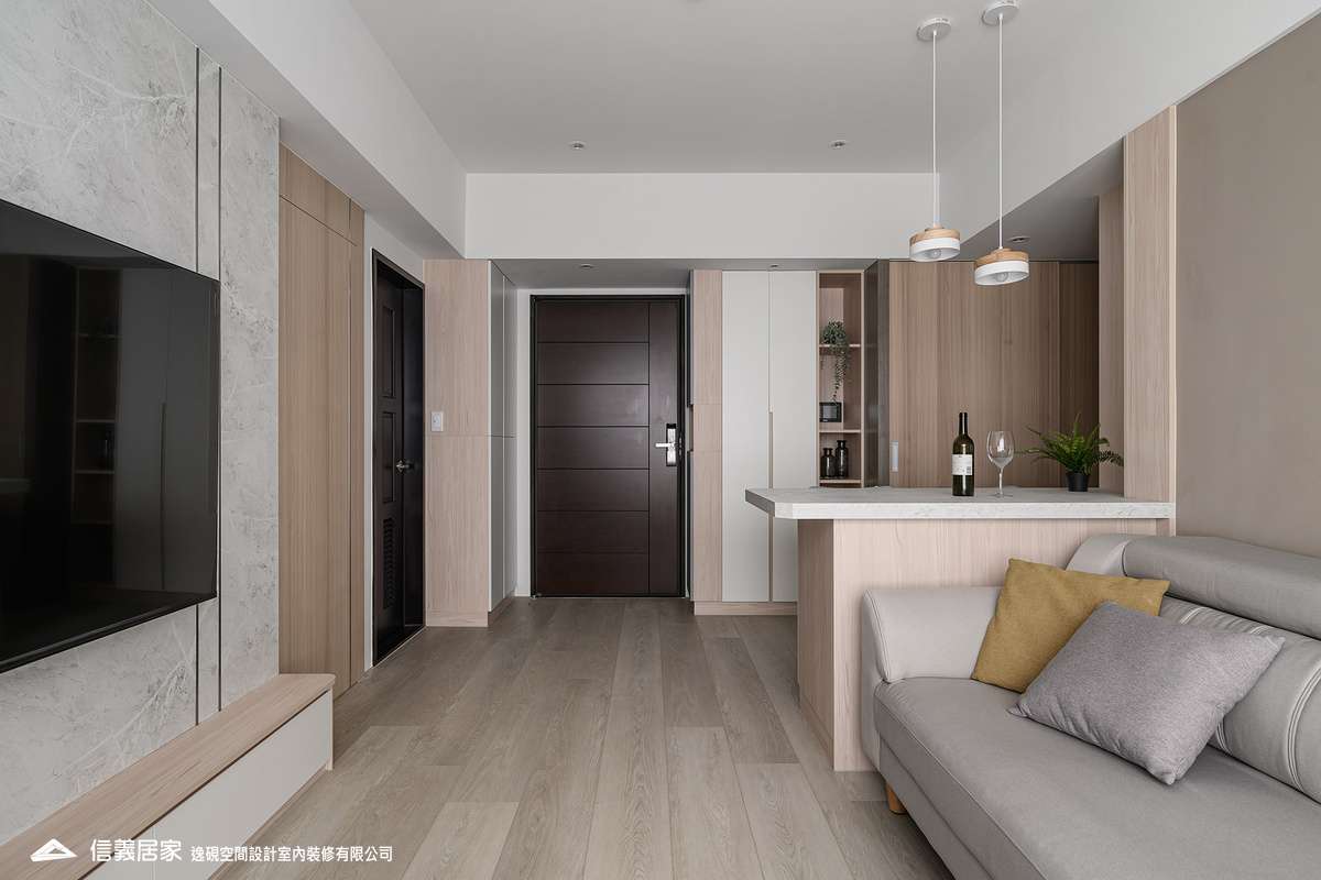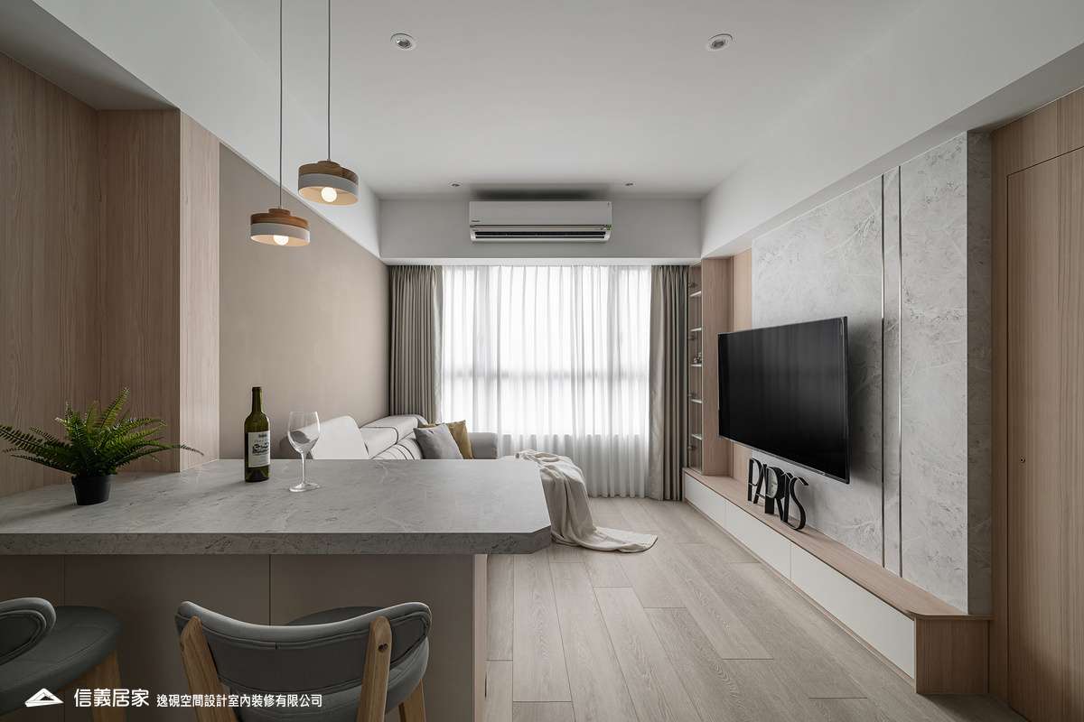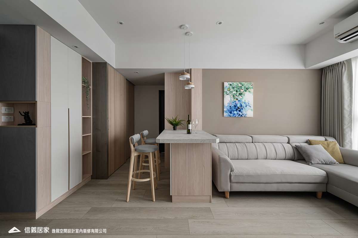 融合石紋、木質與金屬元素,打造現代溫馨感。巧妙規劃收納與樑柱,電視牆延伸至主臥,鍍鈦飾條增添大器氛圍。核心吧台結合多功能,提升空間實用性。設計師隱藏電箱、對講機,並規劃0.5坪儲藏室,讓空間更整潔。綠植點綴,展現個性與溫暖,打造理想居所。