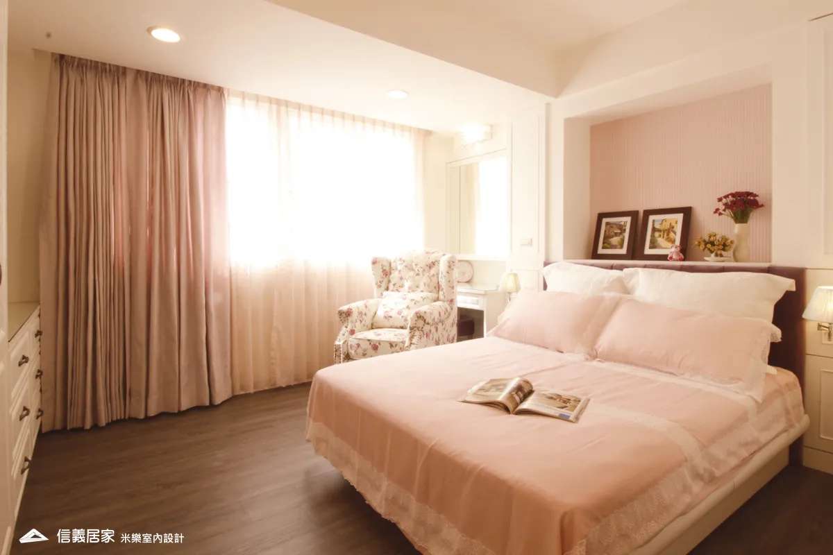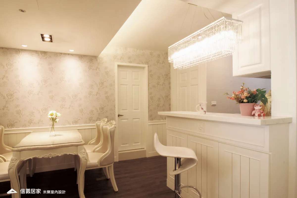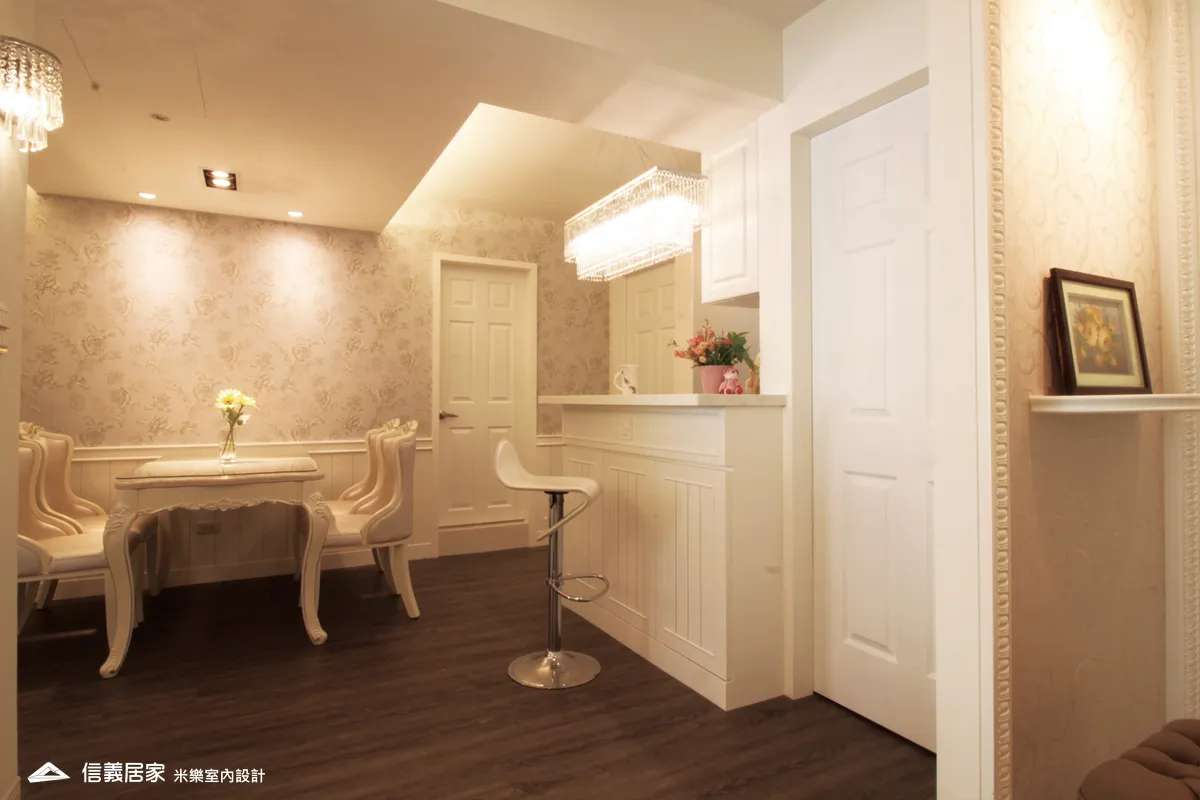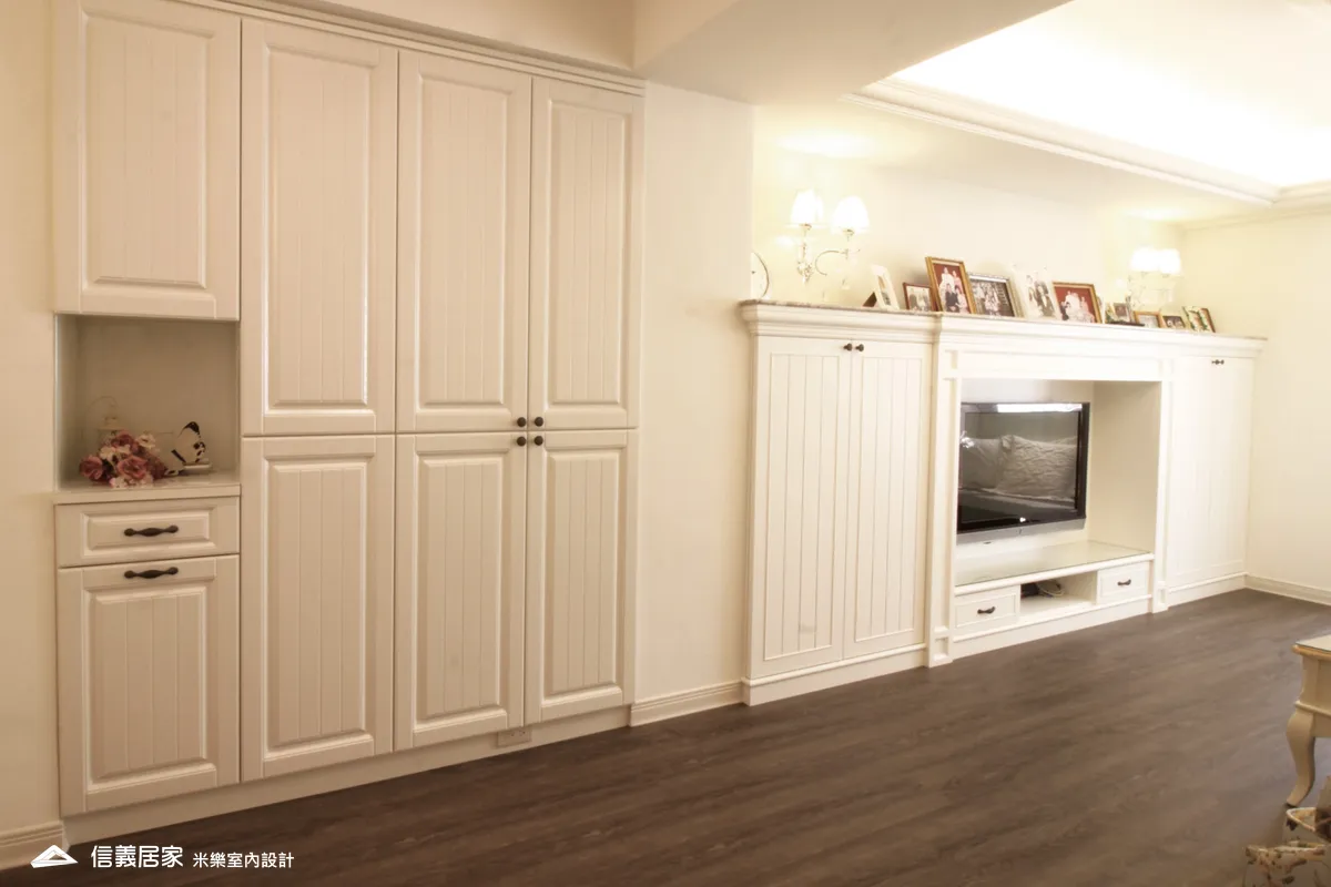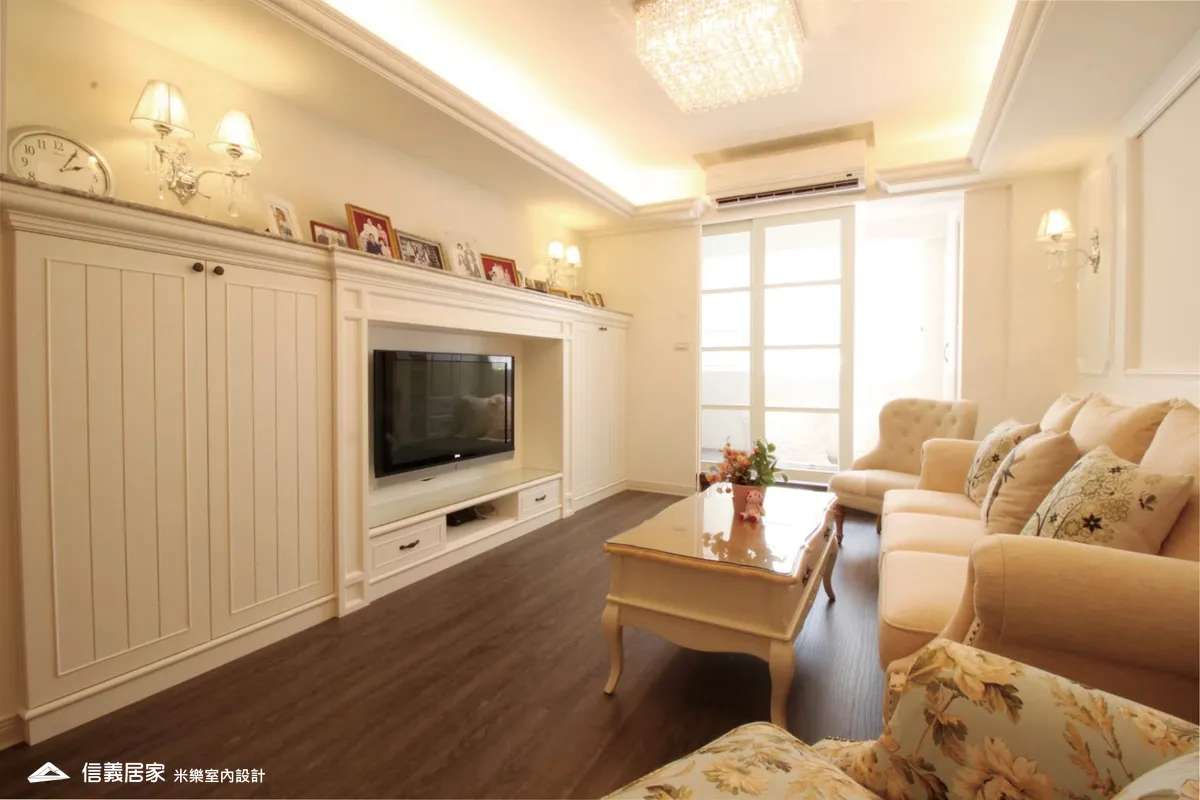 本案以美式鄉村風打造甜蜜小情人的居家空間,透過米色系與木質家具營造自然溫暖氛圍,結合小碎花、格子窗、線板等經典元素,展現自由隨性的生活美學。客廳以奶油色調與布藝沙發為主軸,搭配水晶燈與收納設計,實現優雅與舒適並存的理想生活場景。