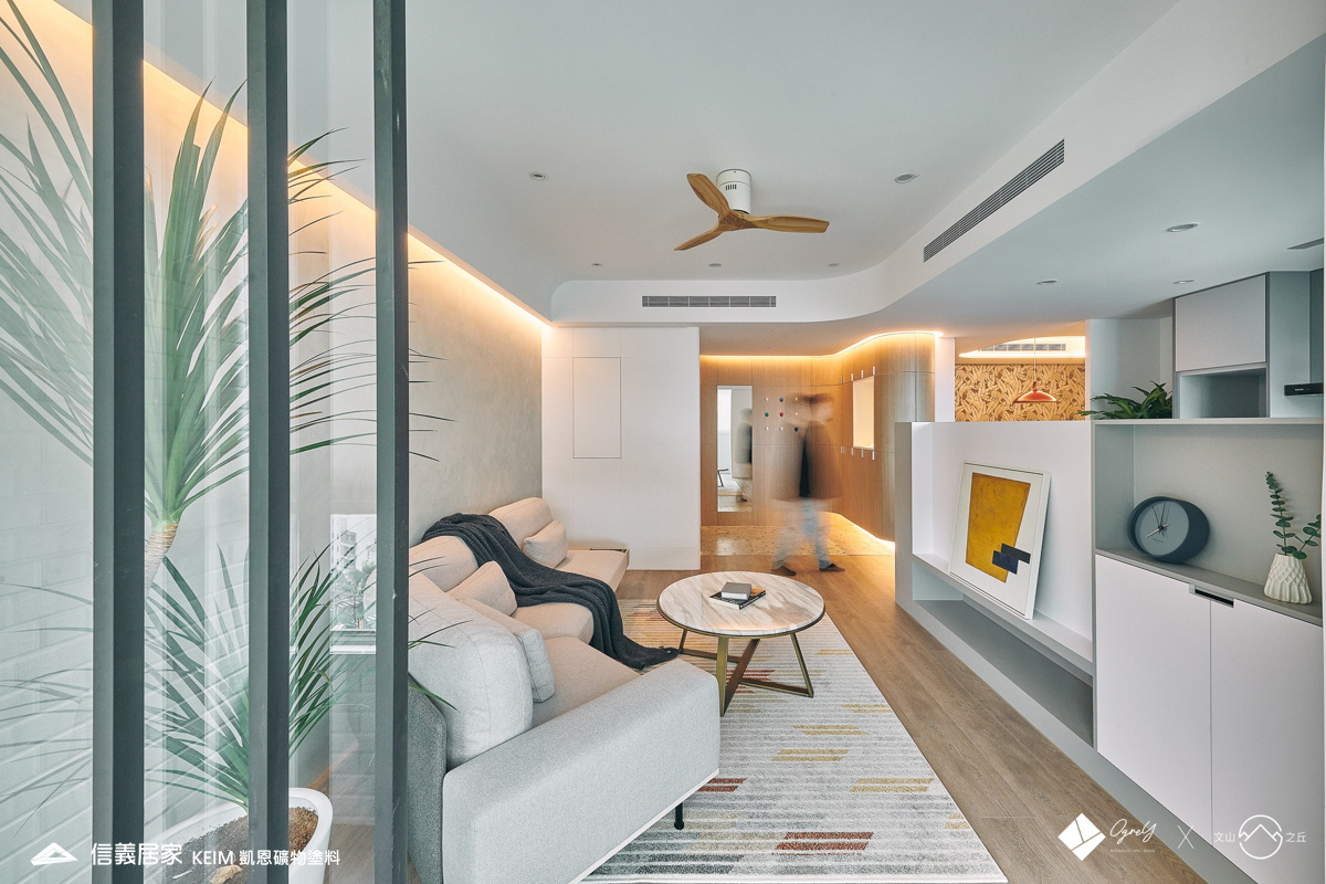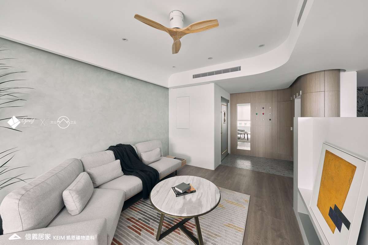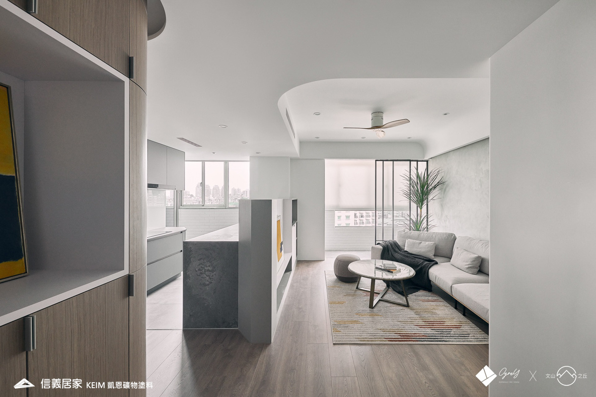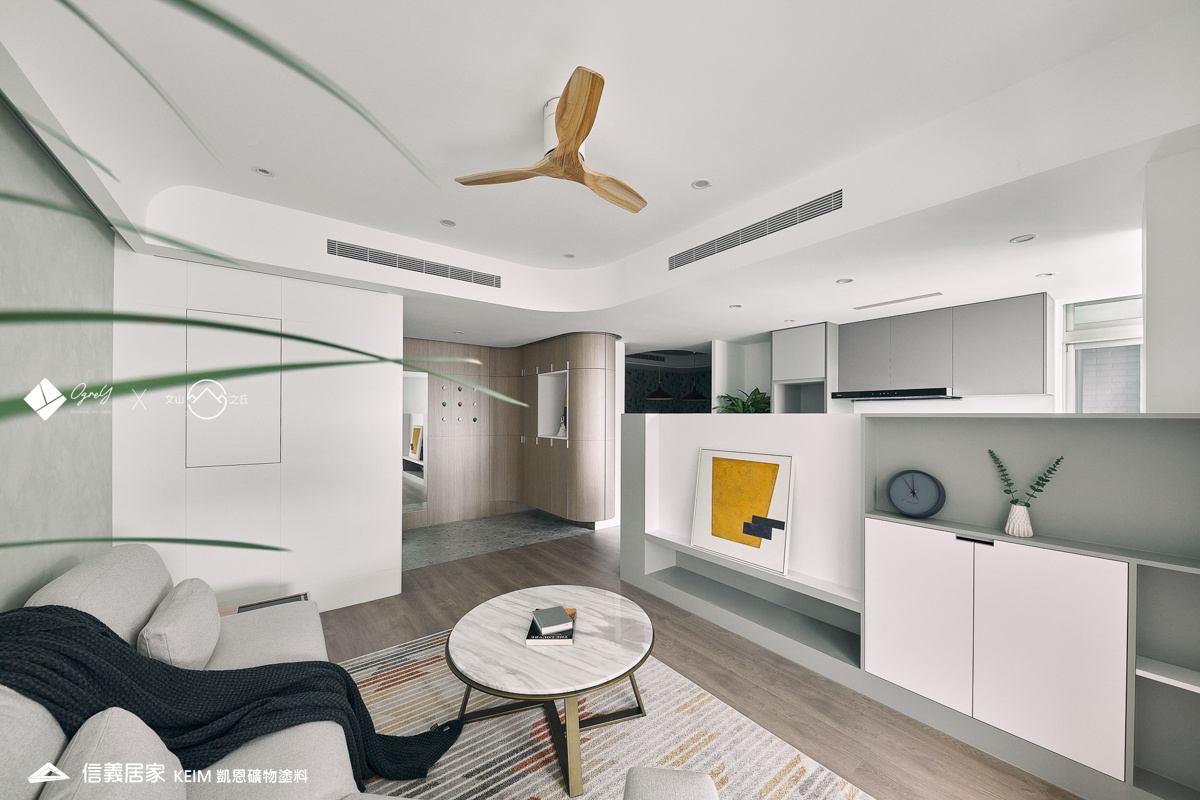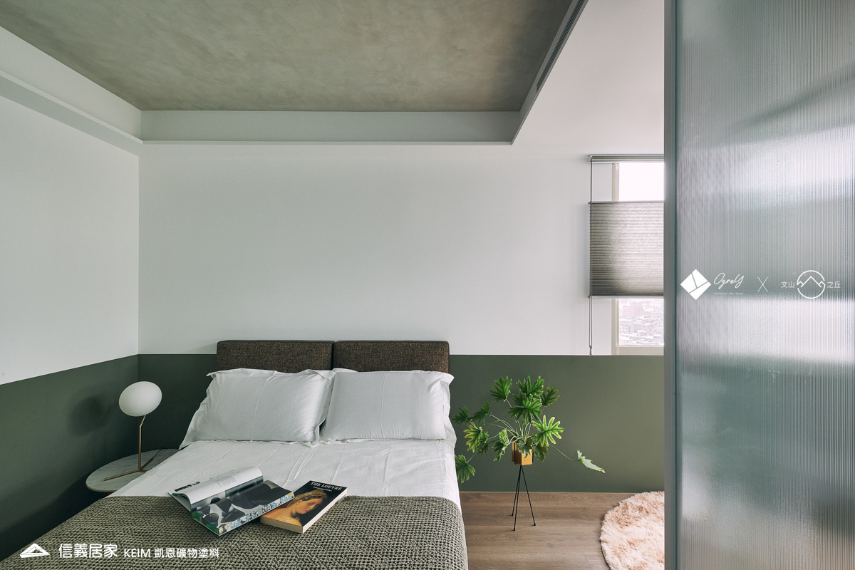 【顏色:9195、 9382、 9456】【地點:新北】【設計師/建築師:文山之丘設計 WSH Design Studio、奧鬲建築師事務所】隨著家庭新成員的到來,房子的需求也隨著改變,文山之丘設計 WSH Design Studio 與奧鬲建築師事務所共同合作,將中古屋翻新。在滿足機能的同時,也在節能、低甲醛、與設計美感中取得平衡!只有真正的礦物塗料,才不必在健康與美學間妥協。甲醛廣泛使用在人造板材、塑料地板、黏著劑等室內裝修材,就算裝修完畢沒有味道了,仍在空間中緩慢釋出長達15年,長期吸入則對人體呼吸系統…等有諸多不良影響。所以在選購建材時,應該選擇甲醛含量為零的建築材料。在室內裝潢中,塗料佔整體裝潢成本的比例是很小的,但對於住在家中的家人健康卻有著很大的影響。凱恩礦物塗料成分萃取自天然礦石,以矽酸鉀溶液和無機礦物色粉照比例調和而成。無添加人工化合物,不會誘發過敏並降低致癌病變機率。讓家真正成為保護家人的避風港,住的健康安心。