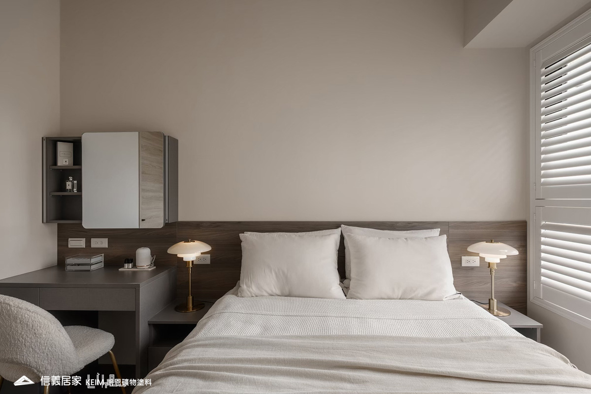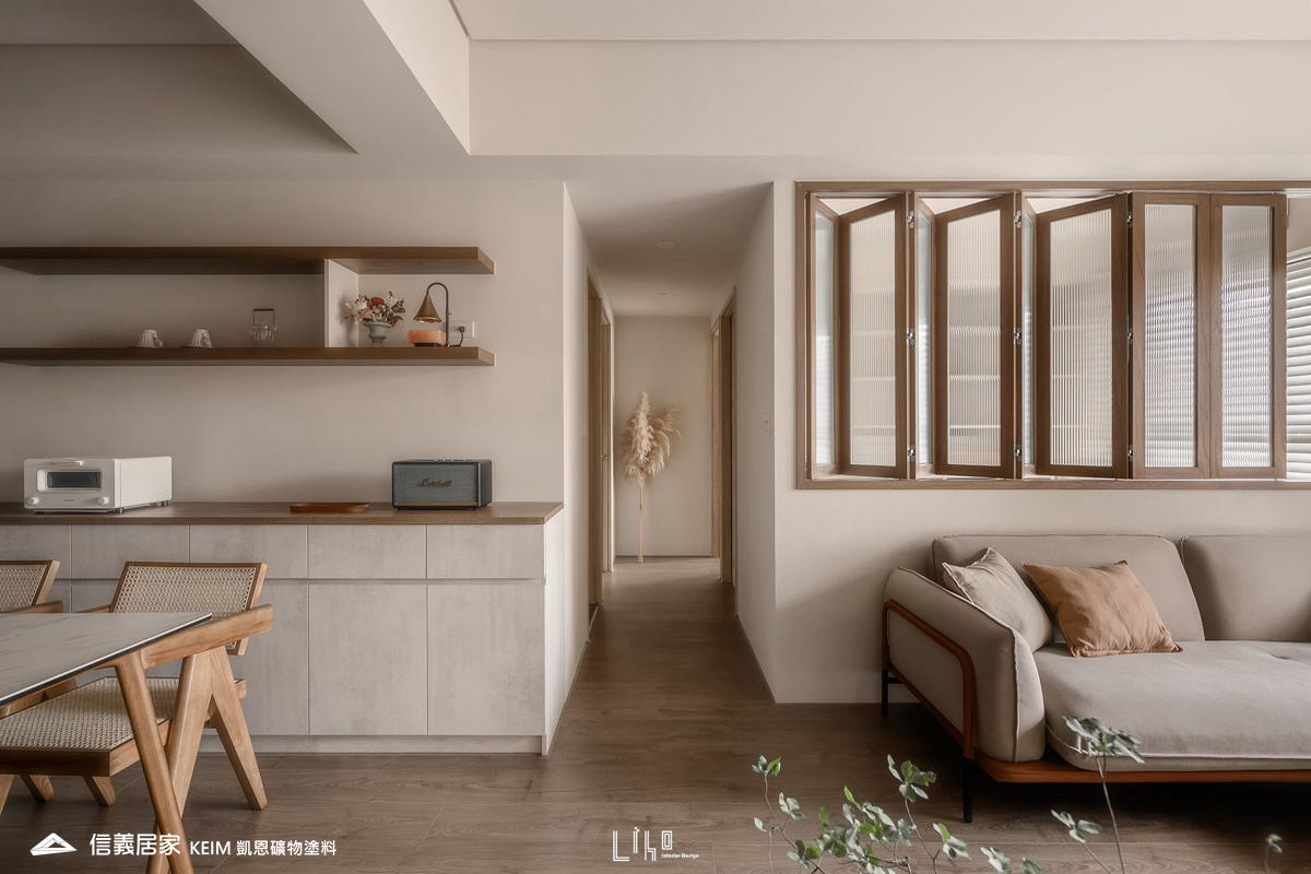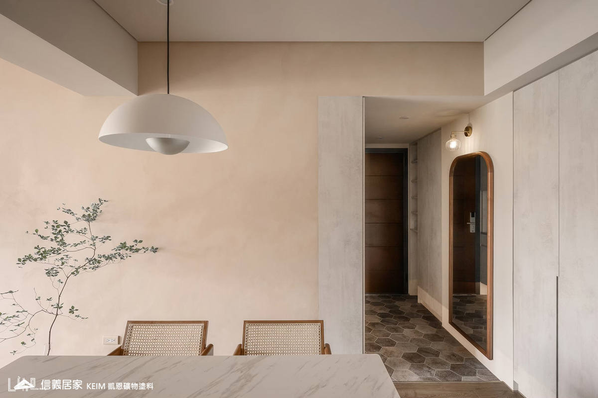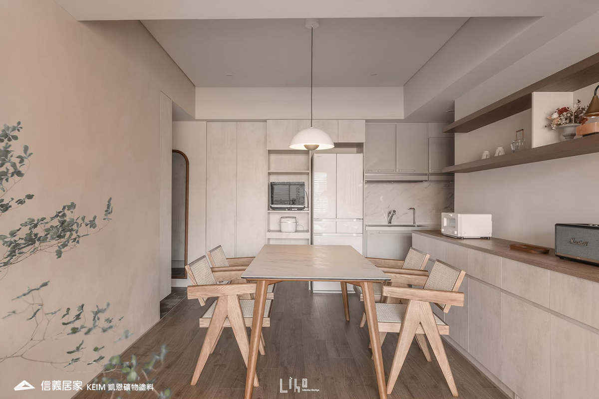【顏色:9294、9295】【地點:桃園】【設計師/建築師:利合室內設計】位於桃園的私人住宅,全室凱恩礦物塗料室內系列奶茶色9294、9295 ,溫暖的色調呈現出舒適平靜的氛圍,簡單溫馨。凱恩礦物塗料原料成分為天然礦物,零甲醛、零塑化劑、零VOC,完全超越世界各國綠建材規範要求,不誘發過敏原。色彩柔和優雅,蛋殼紋溫潤質感,簡單打造高質感又無害的室內空間。