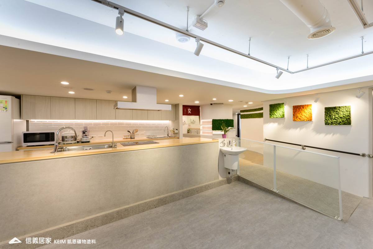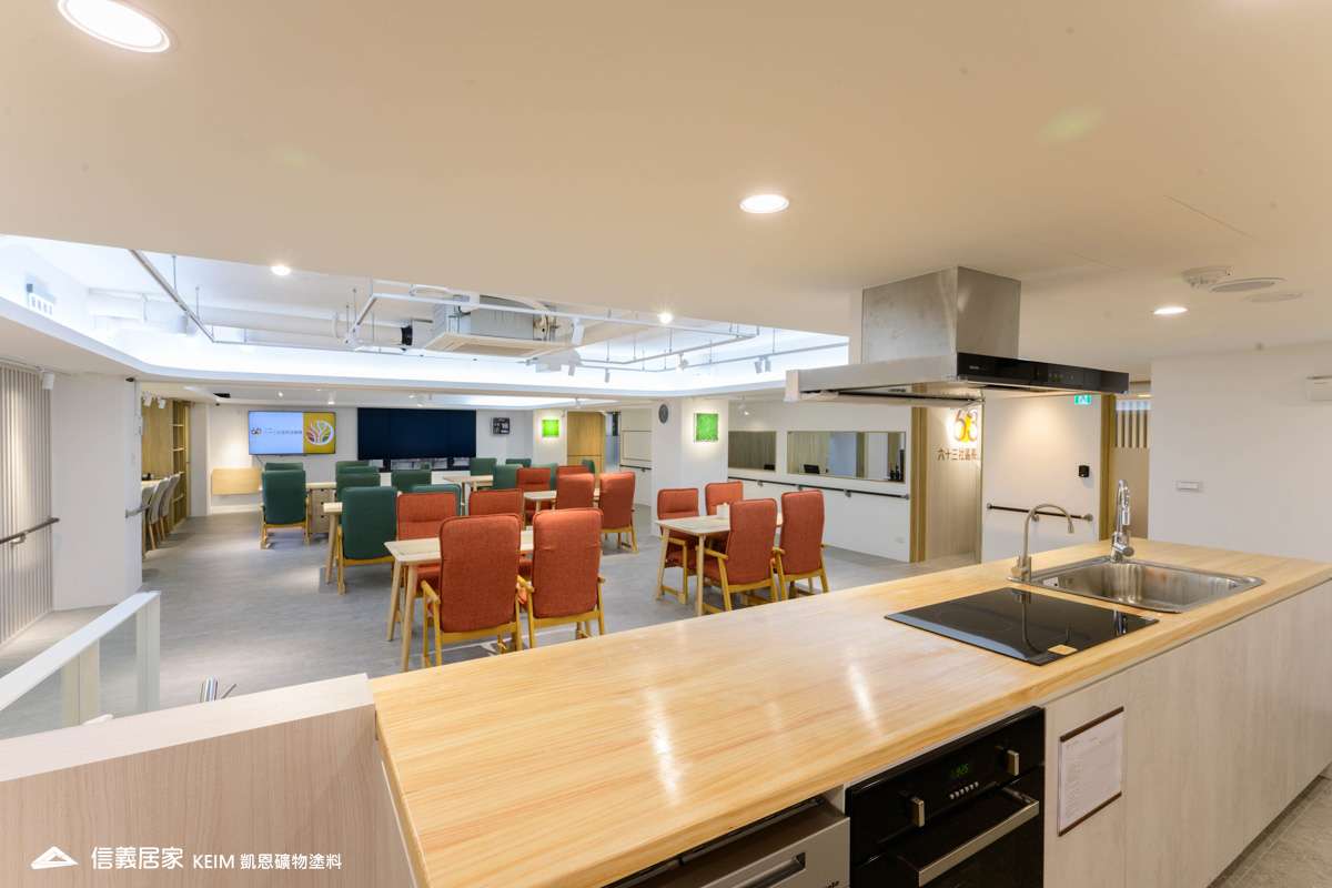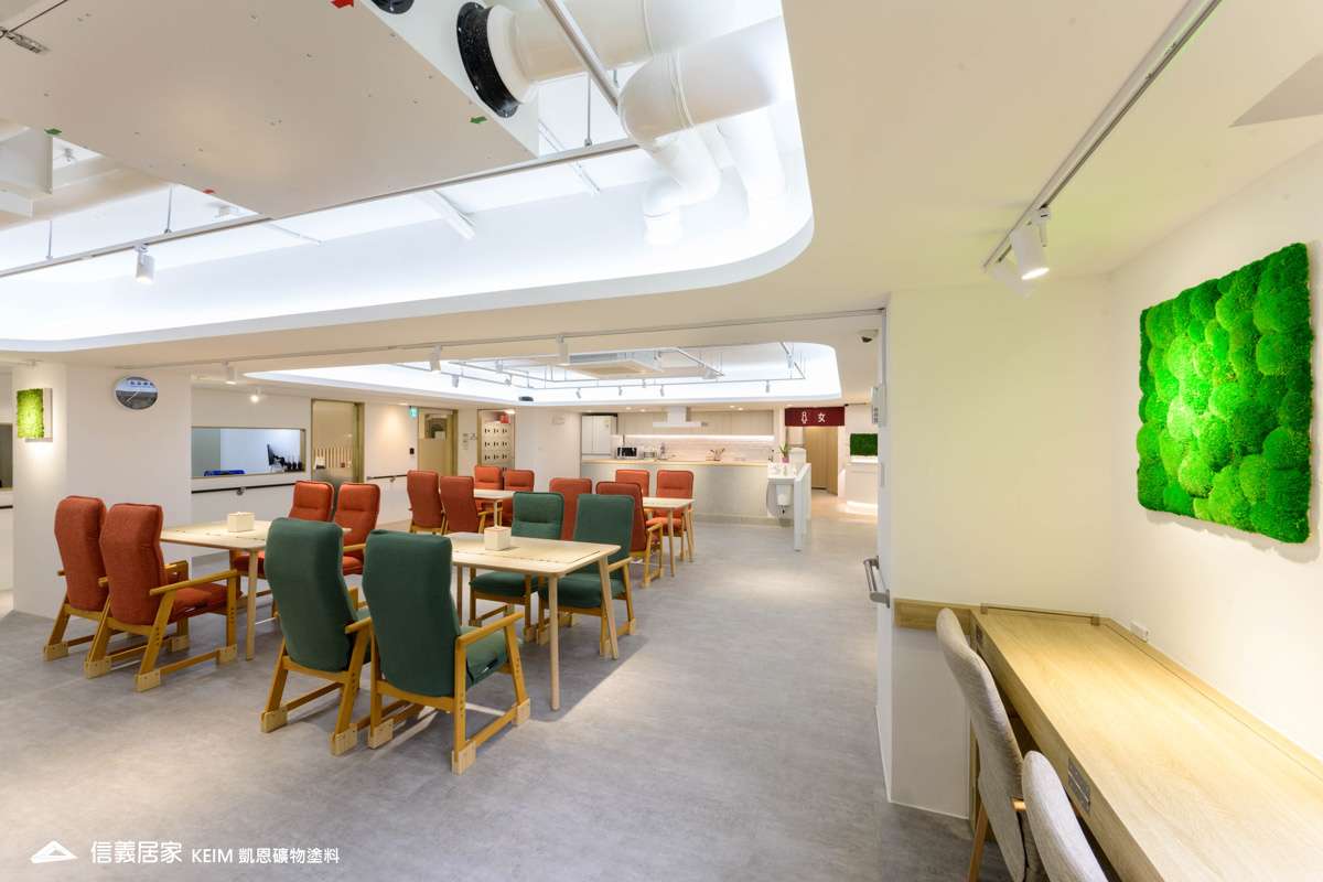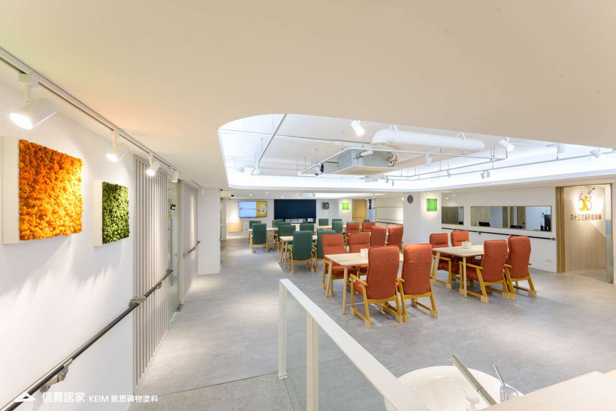 【顏色:white】【地點:台北】本案位於台北市大安區的六十三社區長照機構 (日照中心),在過去日照中心常被民眾視為鄰避設施,導致高齡人口與照護服務嚴重失衡,為確保高齡人口的健康,引進「WELL健康建築認證」,這是專注室內環境來提升人體健康與福祉的白金級認證。不只是綠建築,以健康科學、行為科學、建築科學為論證基礎,透過十大概念:空氣、水、營養、光、運動、熱舒適、聲環境、材料、精神及社區來達到以人為本的理念,成為「全球第一間通過 WELL 健康建築認證的日照中心。」為了符合WELL健康建築認證,能選擇使用凱恩作為室內塗料,我們感到十分榮幸!凱恩塗料利用天然礦物提煉而成,不含任何甲醛、防腐劑等人工化合物,零甲醛、零塑化劑、零VOC,不僅是真正無毒無味,亦完全超越世界各國綠建材規範要求,,不誘發過敏原,完美符合室內健康要求。此外,全系列超過200種顏色皆符合綠建材標章規範,而獨特的蛋殼紋質感,在健康和設計美感方面取得了平衡,為長照機構提供一個健康、環保、美觀、舒適的室內環境。