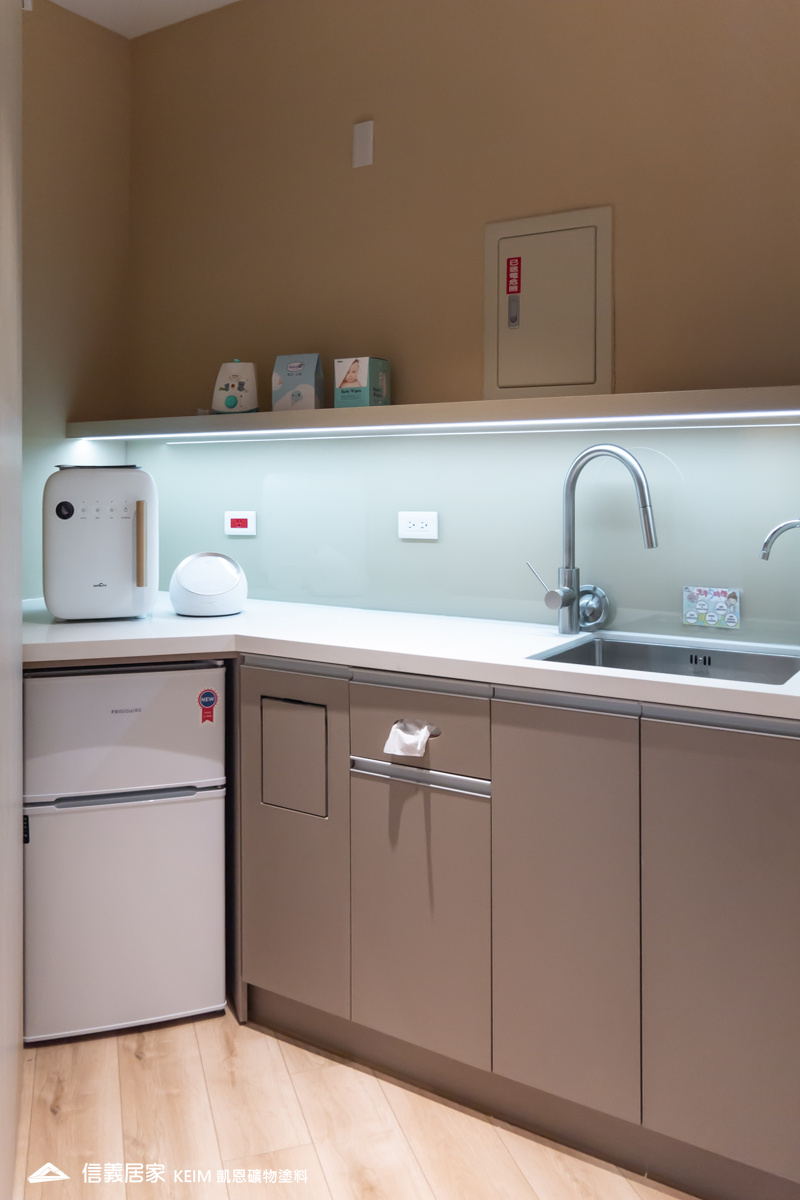 【室內顏色:9251、9255、9298、9392、9410、9435、9477、9533、white。室外顏色:white】【地點:高雄】【照片提供:樂沐產後護理之家】樂沐產後護理之家位於高雄,由一群喜歡分享愛與熱情的助產護理人員所組成,從孕前陪伴、孕期專業知識的傳遞、諮詢與營養關懷、到產後坐月子,細心照顧每一位媽媽與新生兒,讓寶寶獲得全方位呵護,讓媽媽在這個重要階段身心靈徹底放鬆。寶寶對環境的敏感度極高,環境中的毒素對孩童造成的危害不可忽視。因此,我們應該從寶寶最親近的環境著手,徹底杜絕有害物質的存在!樂沐產後護理之家不僅追求卓越的服務品質,更加重視環境的健康與安全。「全館」皆選用凱恩礦物塗料,打造零甲醛、零VOC、零塑化劑、無味、無毒、不過敏的健康居住空間。讓媽媽與寶寶遠離過敏原和有害物質,提供真正安全、綠色友善的獨棟式建築。凱恩塗料礦物含量超過95%,完工當天即可安心入住。無論是一般家庭、嬰兒房佈置,還是為孕婦、銀髮族或毛小孩打造專屬空間,凱恩塗料都是您的最佳選擇。除了全室內使用凱恩塗料外,室外也選用凱恩礦物塗料,面對高雄酷熱的氣候,還是長時間暴露在強烈的紫外線下,都不會出現剝落、褪色、白色黃變等問題,這大幅降低後續維修的費用與時間。這是因為凱恩礦物塗料使用最高等級的無機礦物,具有優異的耐候性與抗UV性,能夠有效抵禦嚴苛的環境考驗,從而保證建築物的持久美觀與穩定性,為使用者提供了更安心的保障。凱恩是業界唯一十年品質保證,無論經過多少年,都能像剛完工時一樣完美無暇。這不僅提升了建築的品質,也為樂沐帶來一個健康、安全且環境友善的空間。