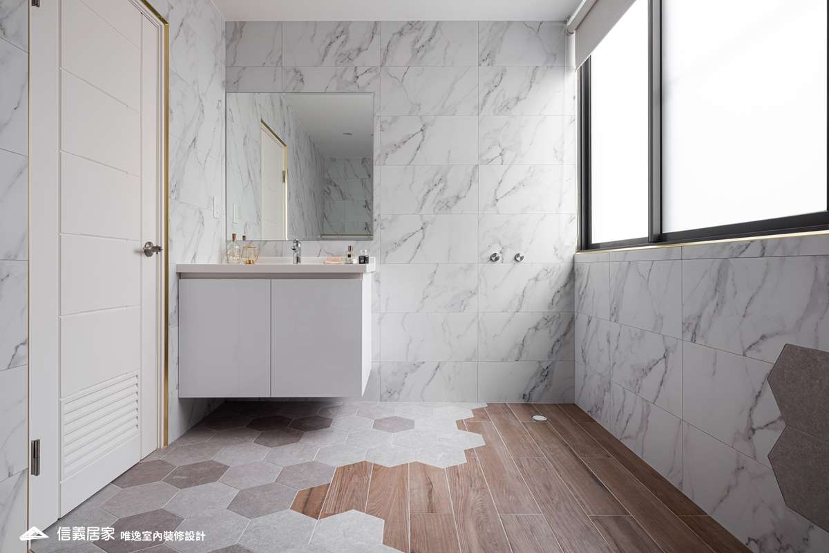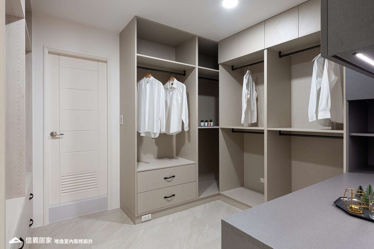 唯逸設計重新規劃格局,拓增收藏間、獨立更衣間,重整主衛浴,由六角灰地磚、六角木質磚引領視覺質感, 將屋主的生活品味融入家中每一角落,構築空間面向,連結生活機能,使各區蘊含極大化實用機能,圍塑寧靜的溫馨氛圍。