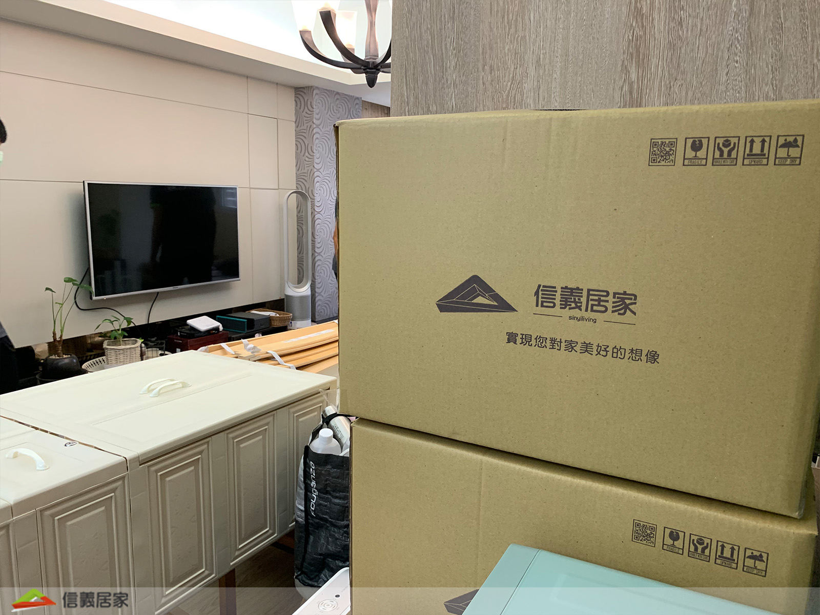 這步就是搬家小哥們的表演時間拉~ 開玩笑的~當然不只是表演,信義居家的搬家人員可是都非常專業的!雖然已滿頭大汗,這麼重的大家電居然搬的臉不紅、氣不喘!想想要是我自己來,肯定是要了我命哈哈哈哈哈 (來自爸爸的感嘆~)