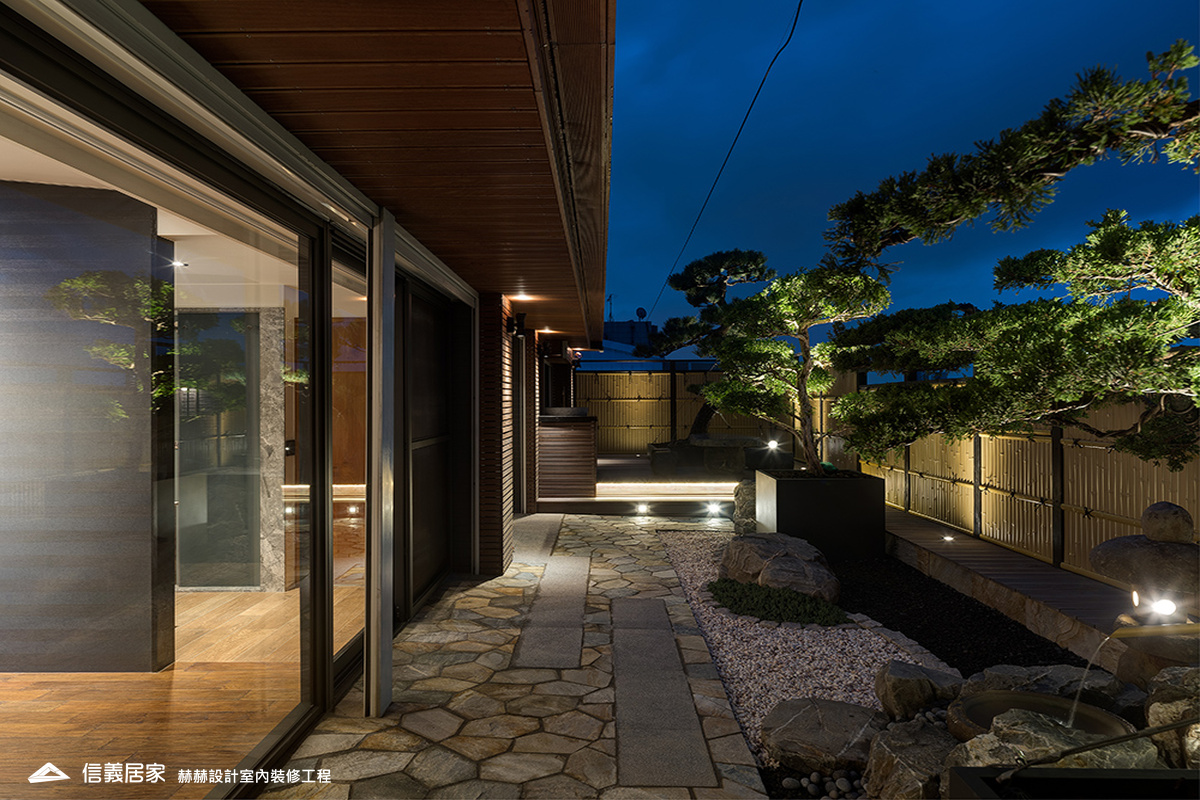 頂樓花園進行防漏處理,並設置流水設計與植物專用照明。