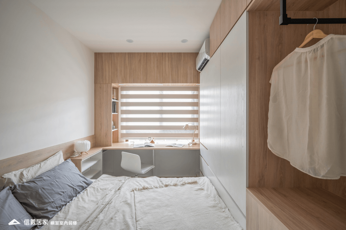面對這些挑戰,設計師以 「機能收納」 為核心,打造一個適應孩童成長、兼具美觀與實用性的家。全室使用美耐皿表面材質,讓孩子能盡情發揮創意,一塊神奇海綿就能輕鬆擦拭塗鴉痕跡。並透過翻新舊家具,透過更換表面材質,讓老家具繼續陪伴一家人。