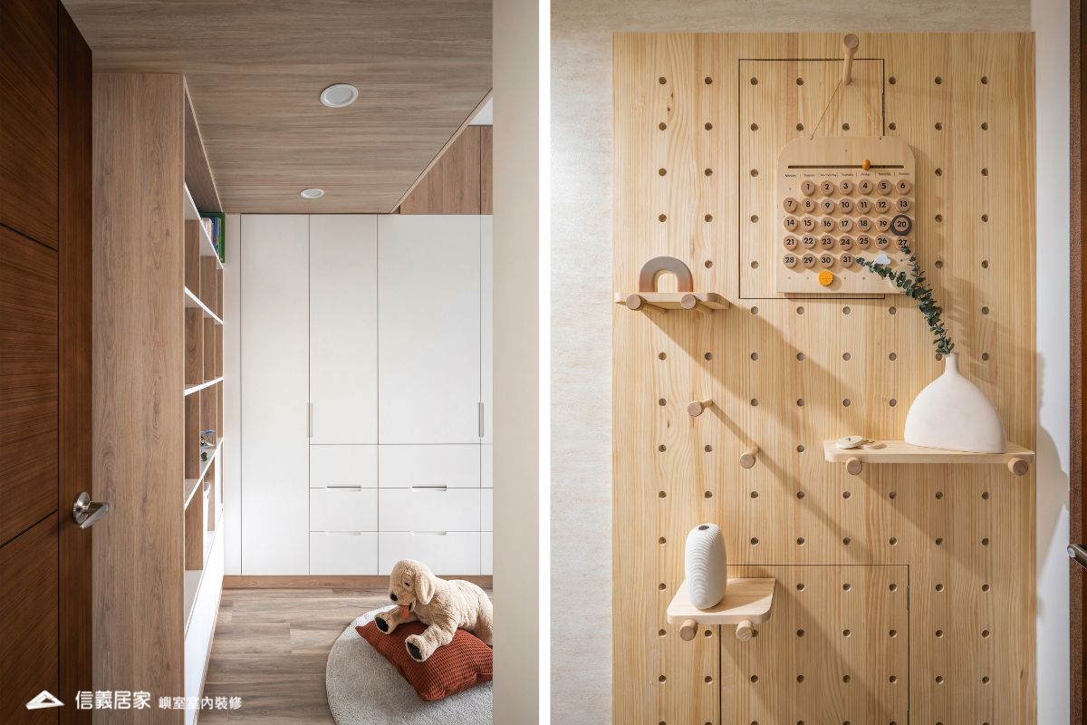(2)右圖:洞洞板收納展示牆,可將屋主一家的東西擺置到喜歡的位置。