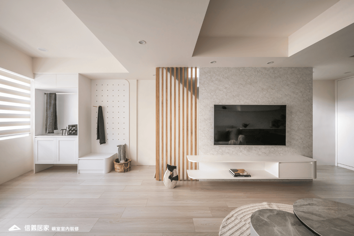 設計團隊從安全性、動線優化與風格整合三大面向著手,為屋主提供最佳解方,首要是提升安全性:全室更新水電管線,針對性增設專用迴路,提高用電安全與便利性。