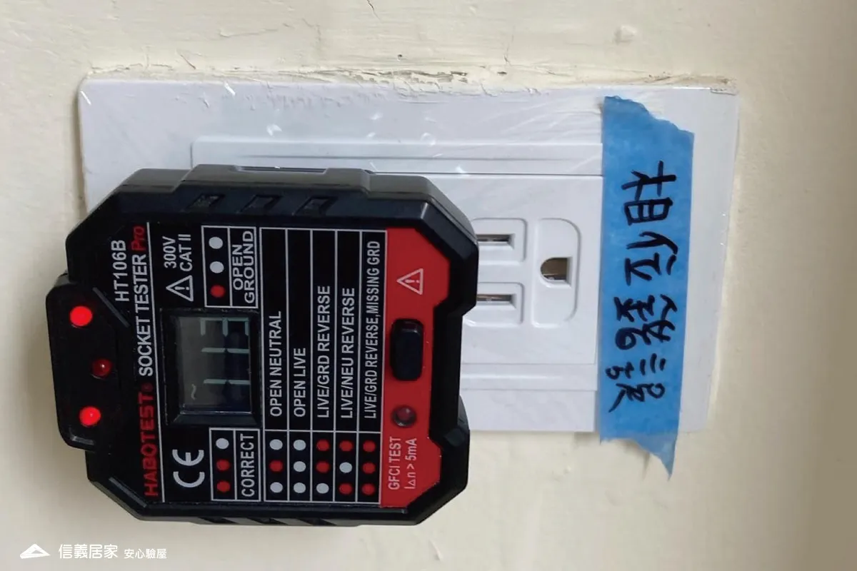 ▲儀器檢測出插座極性接反,可能導致電器損壞。