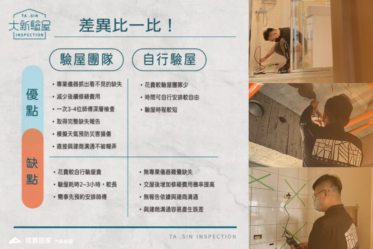 驗屋的本質,是透過檢查過程降低後續居住風險。自行驗屋雖具有靈活與節省費用的優點,但若缺乏專業設備與經驗,較難掌握潛藏性問題,可能導致日後衍生更多維修成本。專業驗屋雖需額外預算,但能透過中立第三方的檢測報告、紀錄資料與流程控管,協助提前辨識風險與釐清問題責任,有助於後續溝通更具依據。