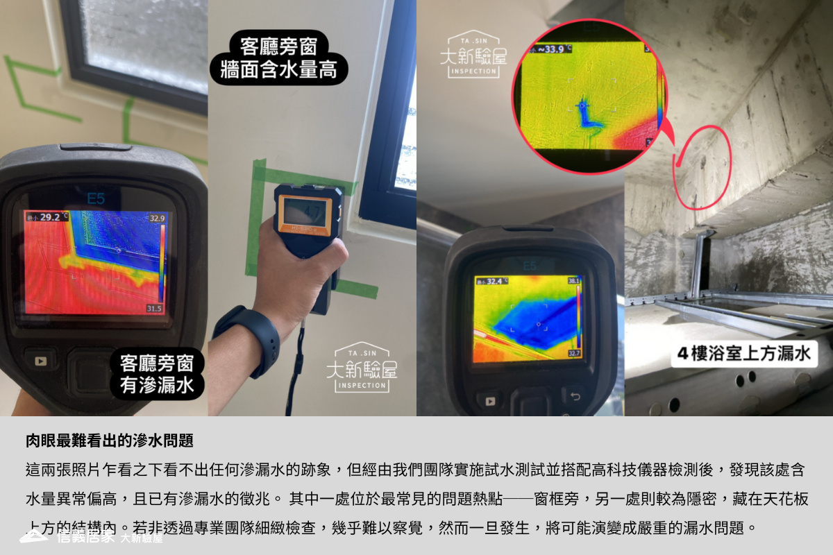 但需留意的是,自行驗屋在沒有專業儀器與訓練的情況下,可能無法全面掌握屋況中潛藏的問題。例如牆面滲水、地坪傾斜、排氣孔配置、電壓穩定性、水壓偏低、異常輻射值或空氣品質等,這類隱性缺失難以用肉眼辨識,也可能影響日後居住安全與裝修成本。