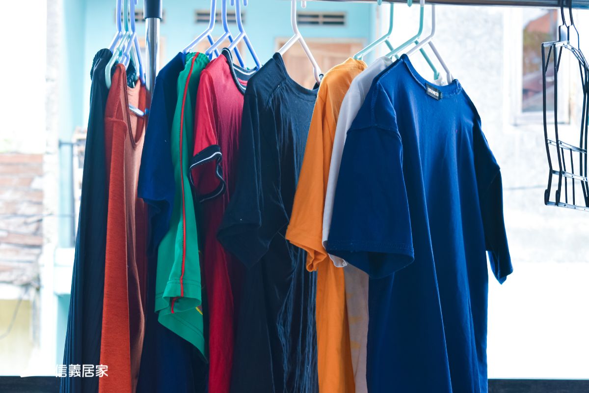 3.晾衣保持距離:每件衣服至少保持15公分的間距,讓空氣有空間流動。