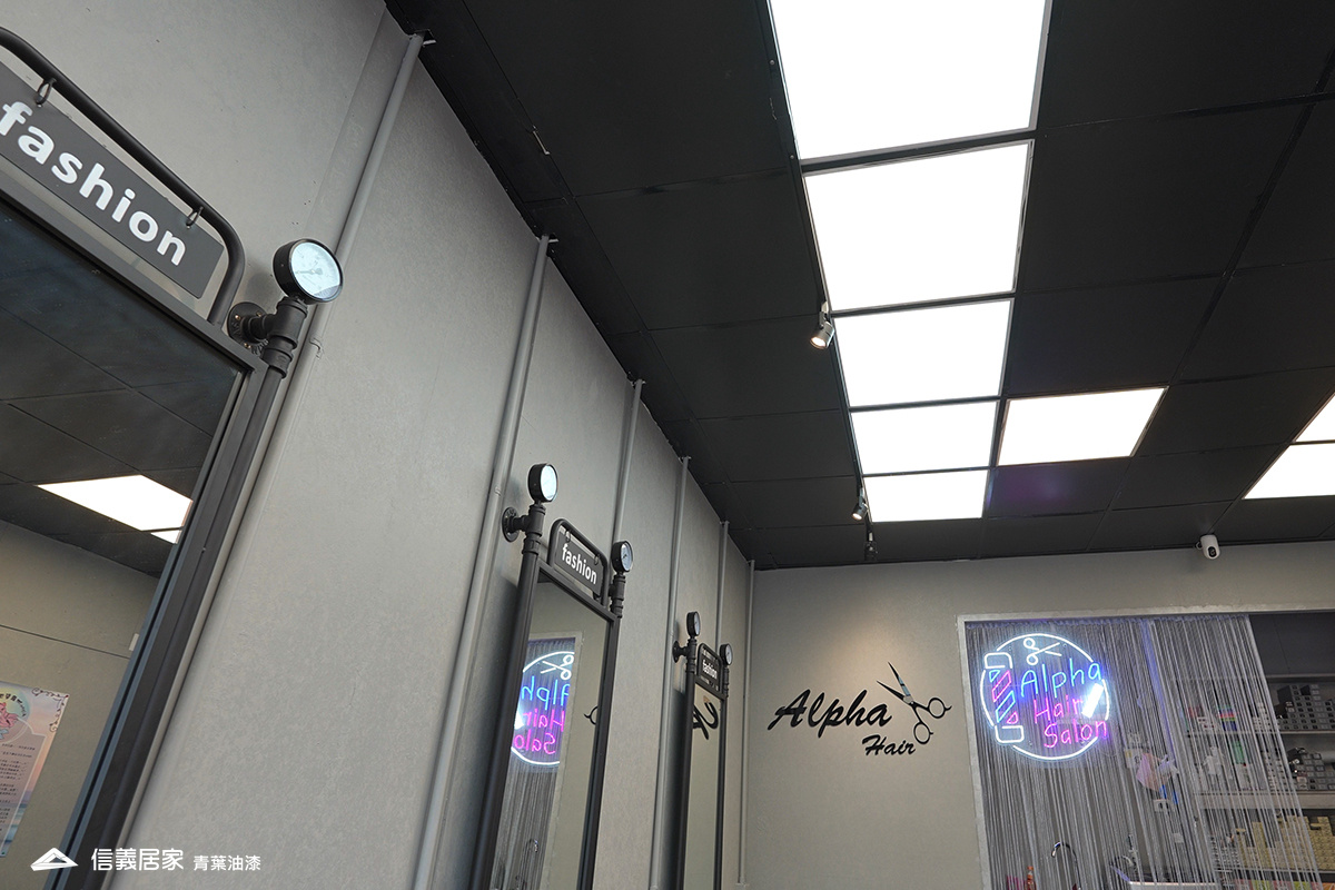 77Alpha 阿爾髮造型沙龍,是一間由理髮師創辦人親手刷漆、親自設計的工業風髮廊。為了打造理想的工作環境,在沒有請設計師的情況下,她選擇以 DIY 方式,一筆一劃地將空間重新打造,不僅壓低成本,更親手實現心中的風格藍圖。