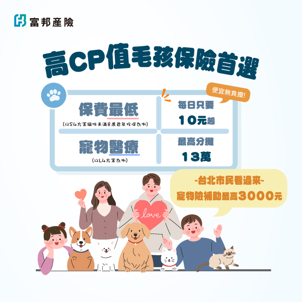 \台北市寵物險補助,申請最高可獲$3000元/