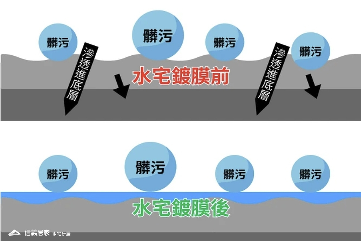 鍍膜的原理就是就是比髒污先一步,盡可能地填平物件本身的毛細孔,並在物件表層形成一定的厚度,目的在保護物件、減少受到髒污侵蝕的風險,讓你有挽救昂貴傢俱與裝潢的機會。