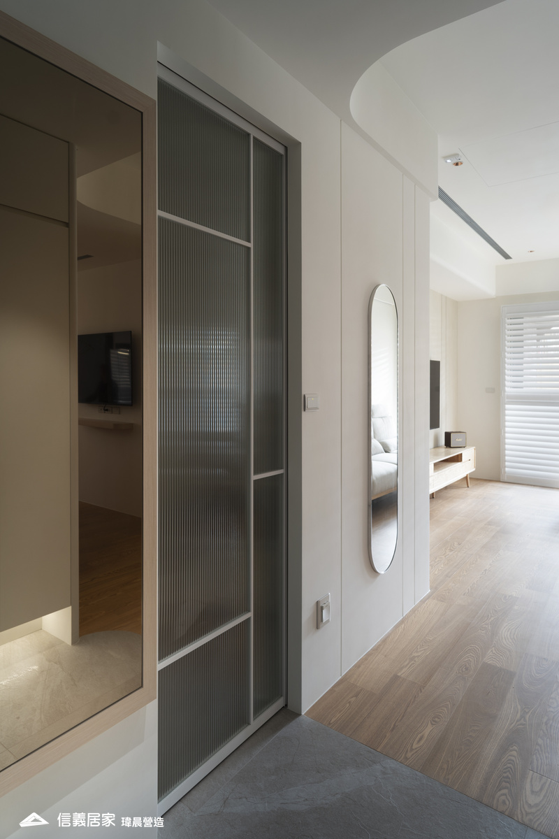 女屋主平日出門喜愛搭配服裝,更衣室成為她的專屬小天地,不僅是收納衣物的空間,更是每天出門前的儀式感。從毫無隔間的毛胚屋,到動線清晰、機能完整的居所,是我們與屋主多次溝通與細心規劃的成果。這不只是一次裝修工程,而是將生活的想像落實於空間中的美好轉化。