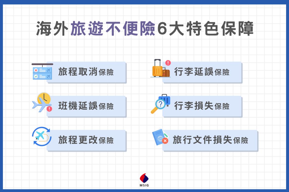如果因航空等公共交通工具業者處理失當,導致托運行李未能在抵達目的地時同時抵達,行李如延誤達六小時以上,保險公司將能夠提供一定額度的賠償費用。