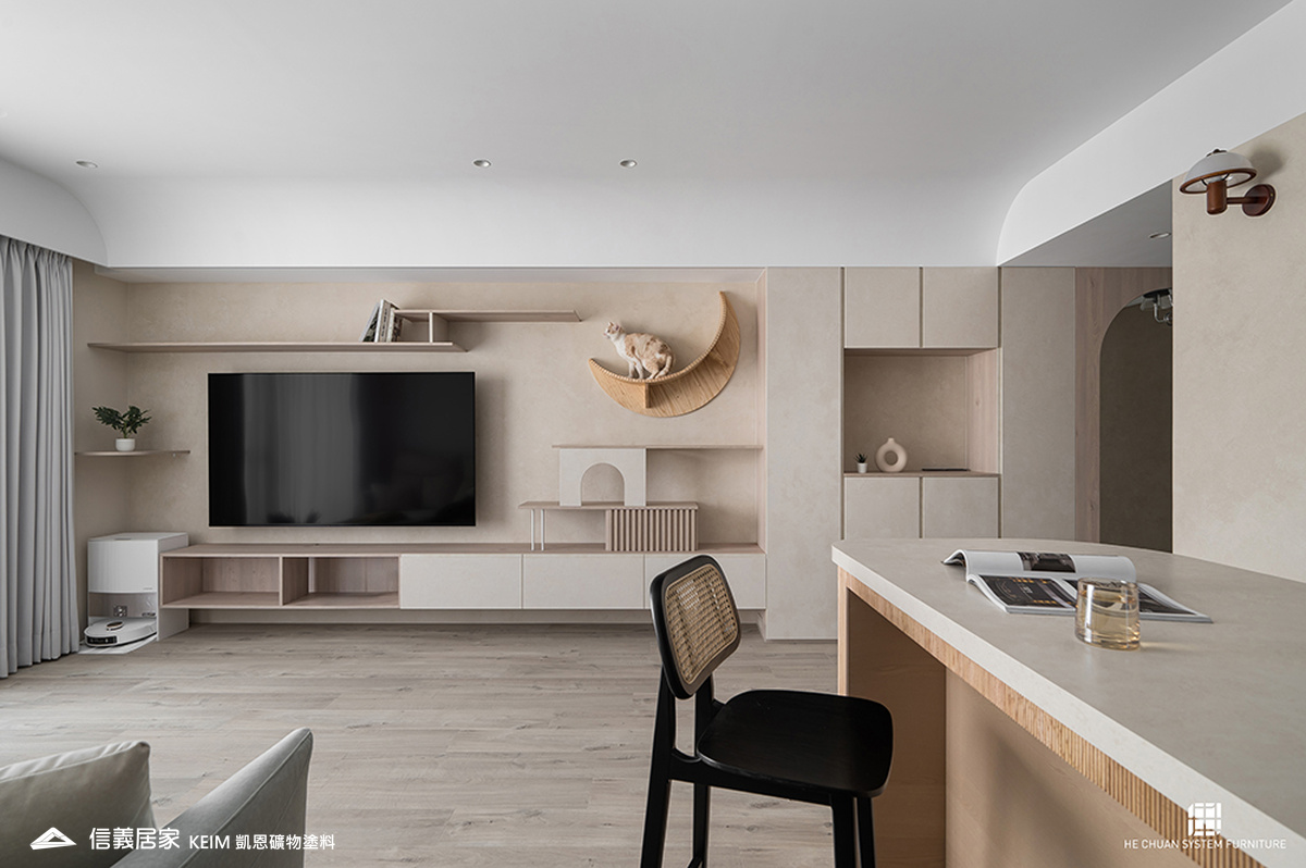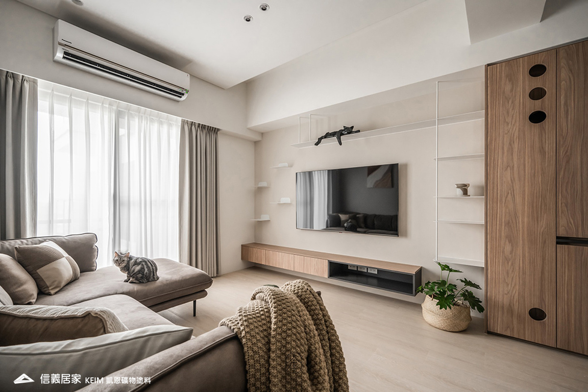 除了不產生靜電與黏性的特性外,凱恩塗料具有獨特的溫潤質感、色彩飽和細膩,在光線下不會反光或炫光,不僅提升空間質感,也為毛小孩創造出舒適友善的環境。
