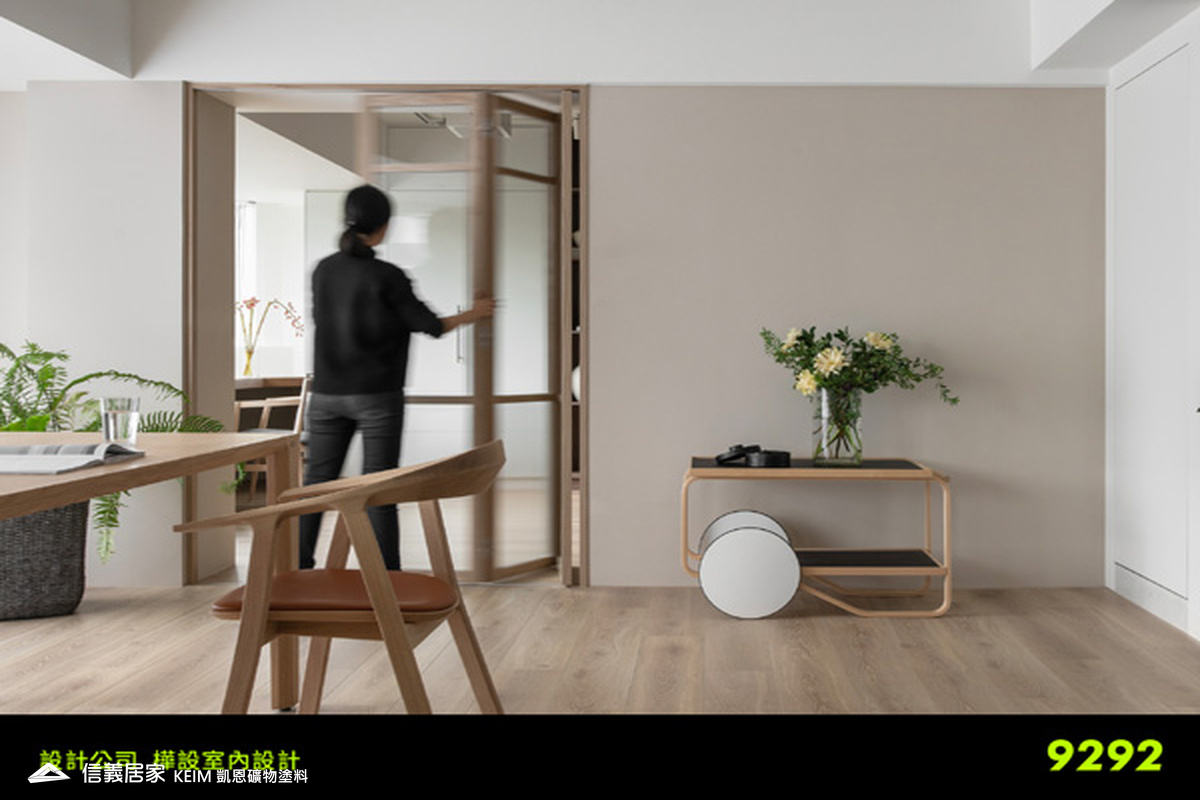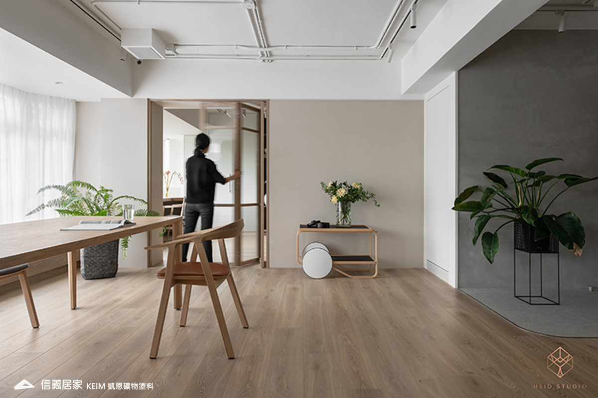 比起淺色木地板,暖色調的地板能讓空間看起來更為溫馨質樸,同時也是想打造日式無印風第一選擇。牆面的配色邏輯與淺色木地板相似(如色號9870),特別推薦往大地色系、奶茶色系的方向(如色號9292)挑選,使整體空間與木質元素相互呼應,輕鬆勾勒出溫潤的居家氛圍。