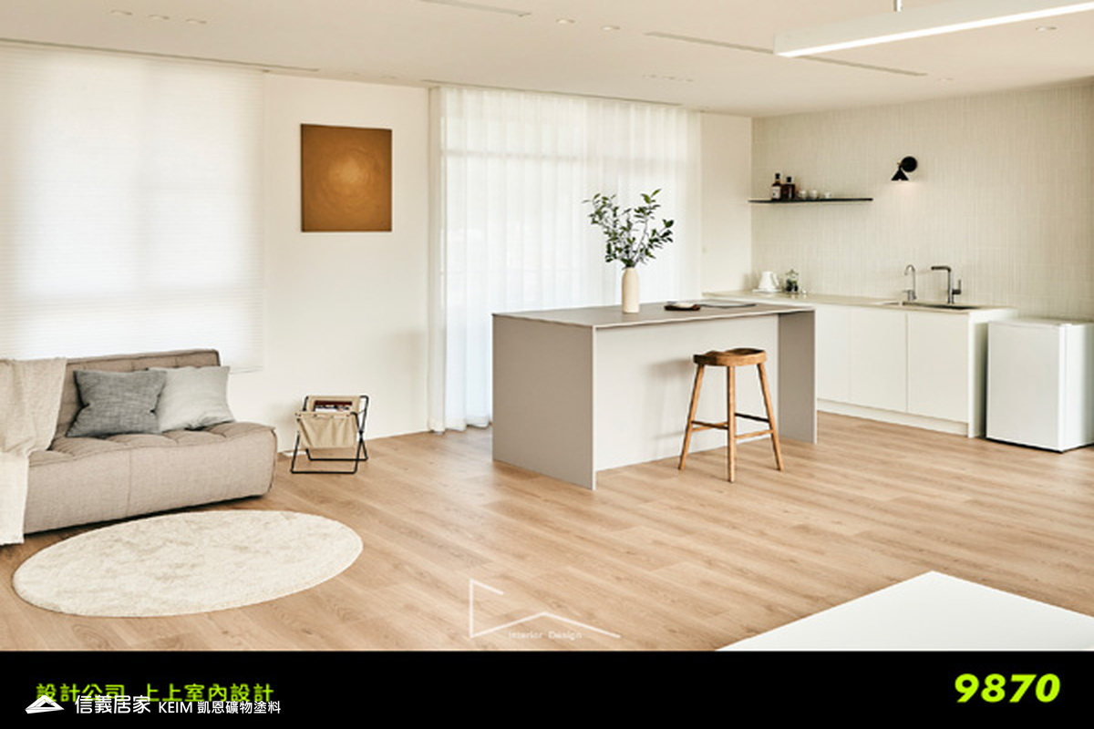 淺色木地板是想營造明亮清爽氛圍的首選,選用淺色木地板在牆面配色上較不受限,不論是選用淺色系延伸空間感,或運用飽和的配色(如色號9482)呈現視覺焦點,都能與淺色木地板有很好的搭配效果。若不擅長整體空間規劃的朋友,牆面顏色建議避免選用過深的顏色,以免造成頭重腳輕的感覺。