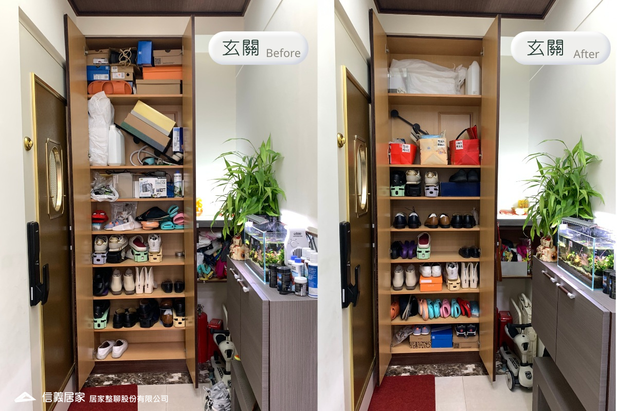 玄關是出門與回家的第一站,也是收納需求最複雜的地方。鞋子、包包、雨傘、口罩、購物袋……若缺乏「定位」,就會越堆越雜、越放越亂。