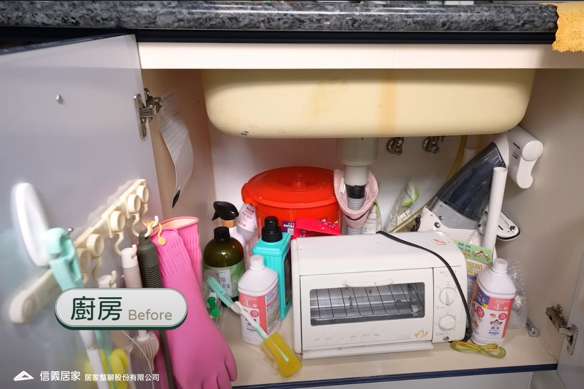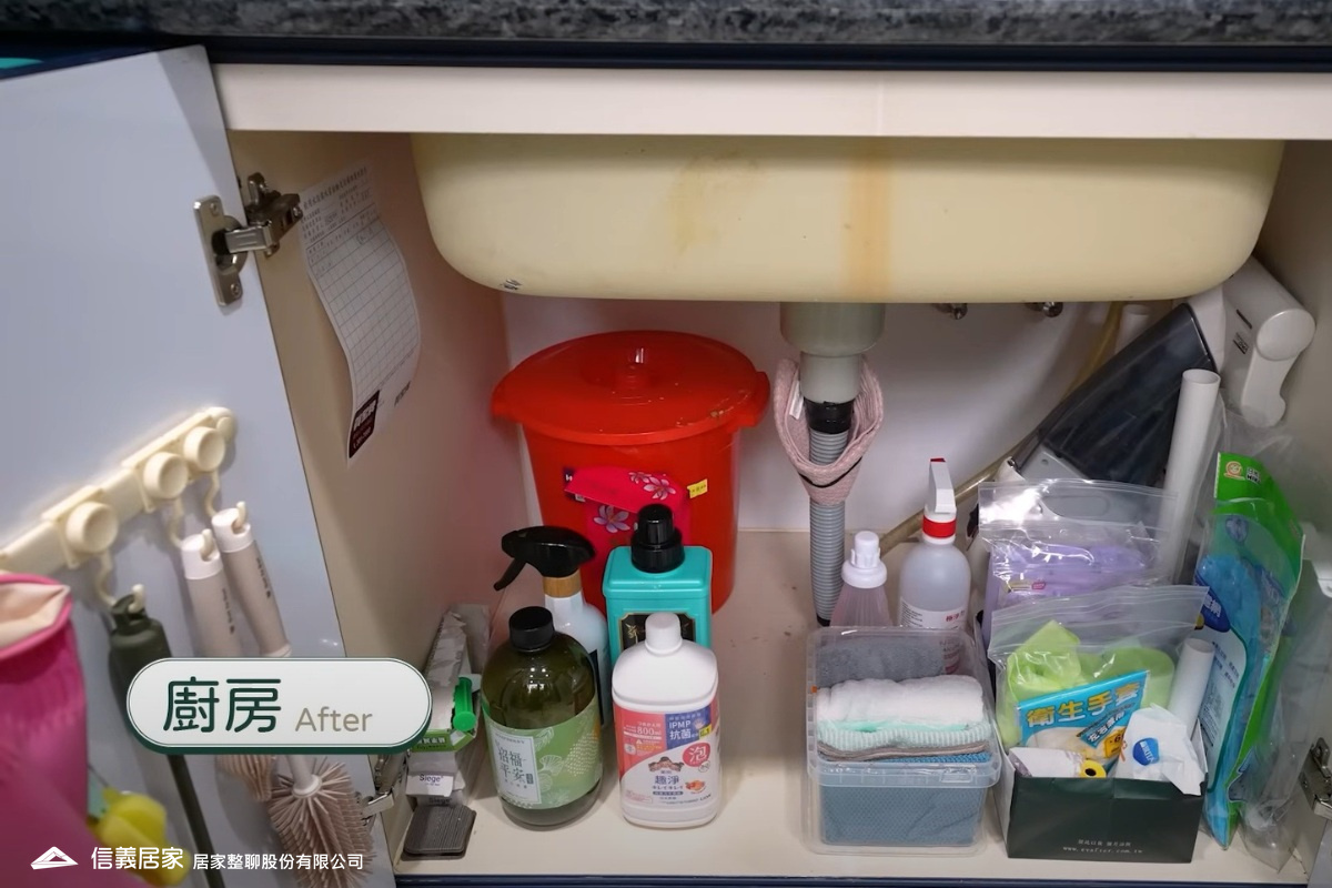 整聊師根據使用習慣,重新規劃動線與收納邏輯:常用食材放順手處、罐頭與乾貨標示分區、備品設置清單紀錄。如此一來,減少重複購買與食物浪費,讓廚房從此不再「亂亂塞」,也重新找回備餐的從容節奏。