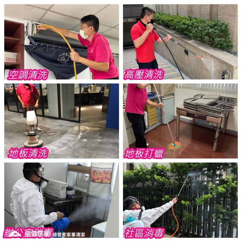 總管家家事清潔 清潔工種:布沙發、布座墊、窗簾、床墊清潔及除塵蟎、燈具擦拭、臭氧消毒、環境消毒、地板打蠟、石材研磨、地毯清潔、高壓清洗等工項工種