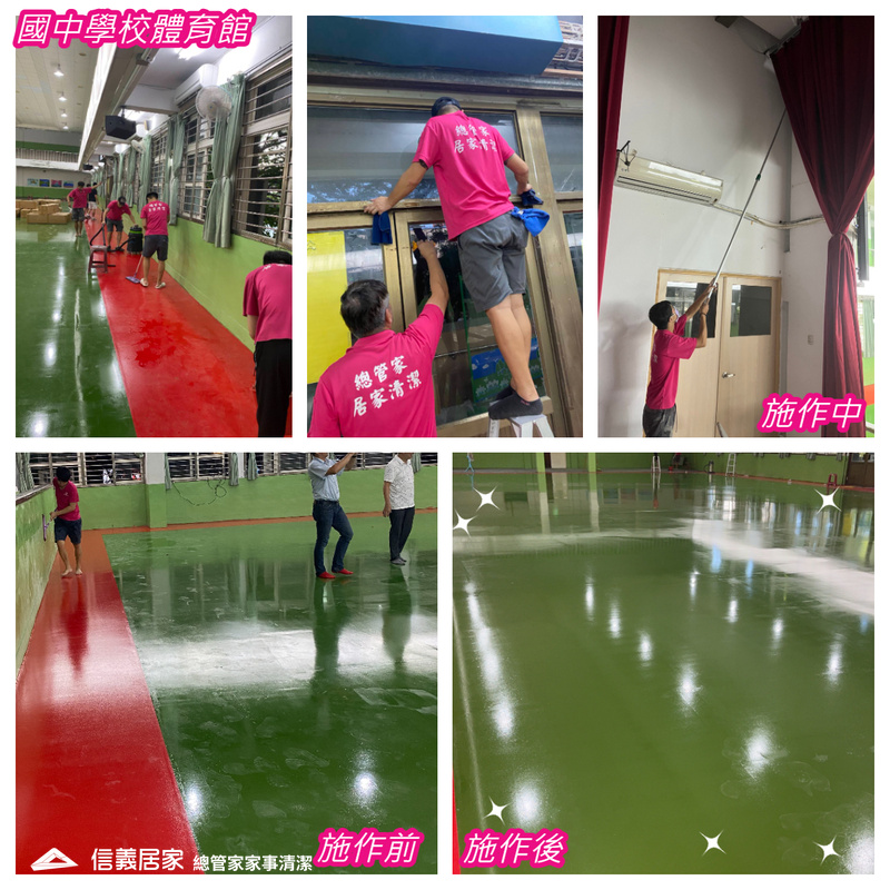 〔總管家〕最近連續接了二所學校的環境清潔維護!施作範圍一所是學校體育館PU地板翻新,施工後清潔維護!另一所是學校川堂,學生活動出入口地板髒污油垢清洗!〔總管家〕工務部承接任務,在最短時間內還給莘莘學子們,一個乾淨舒適的學習環境!
