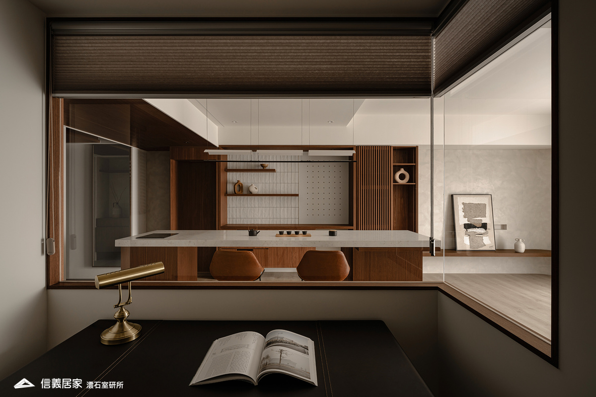 重新劃分格局,將主臥空間加大,並以玻璃隔間打造通透書房,使光線自然流動。
