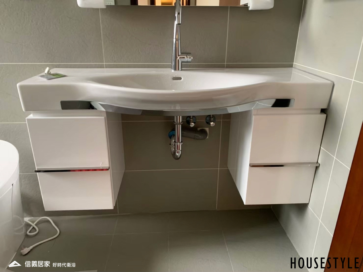 業主因為家中浴室有無障礙設計的需求,經由介紹來到好時代訂做專用浴櫃,在跟規劃人員的討論及溝通後 – 在已選定的瑞士 LAUFEN Palace 120 cm面盆下,訂做一套符合此面盆 + 無障礙設計的專用浴櫃。