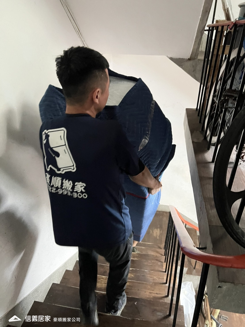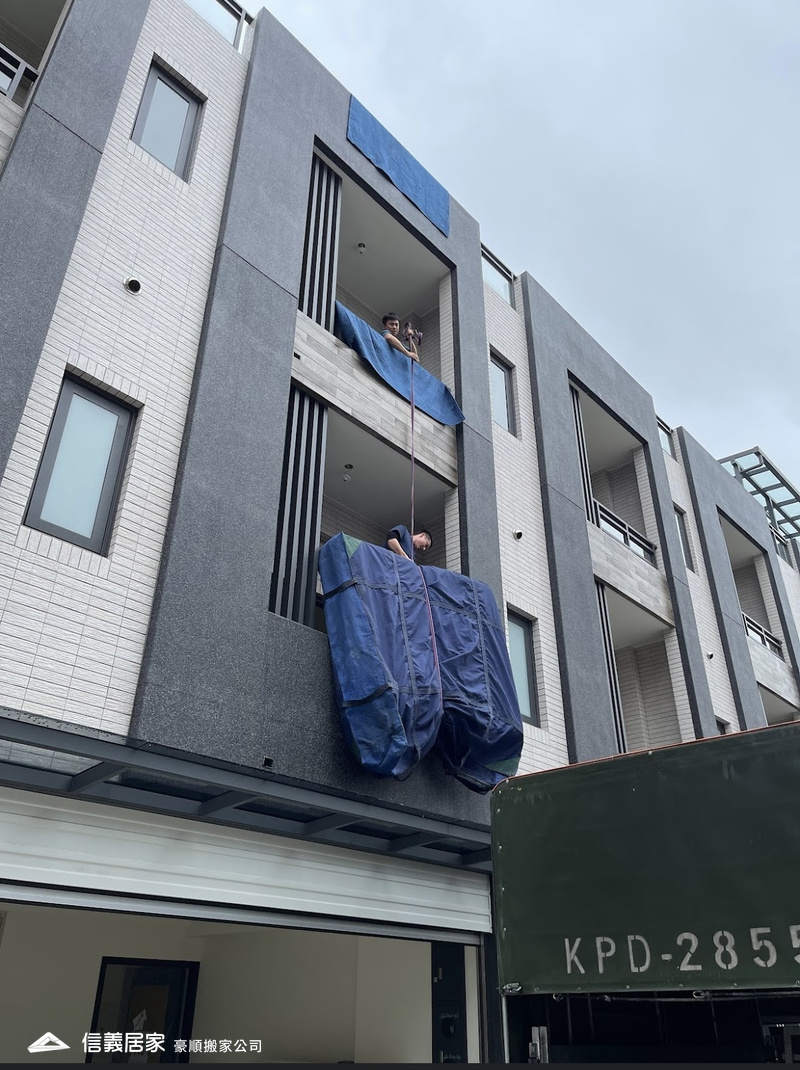 做完防護措施完成後,豪順搬家在以最安全迅速的方式搬運下樓集中。