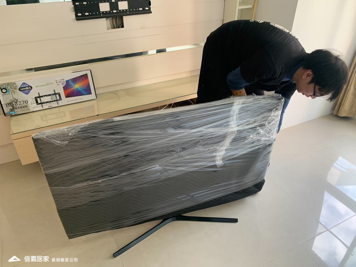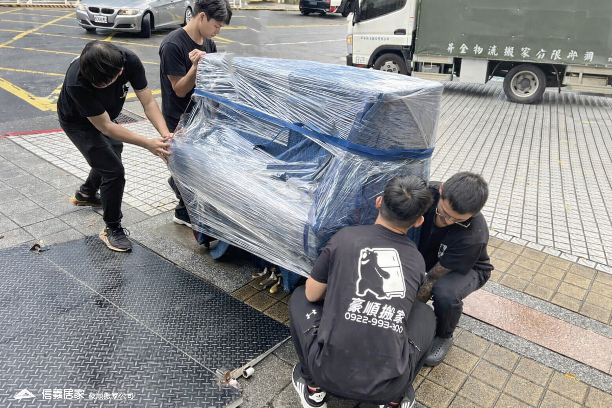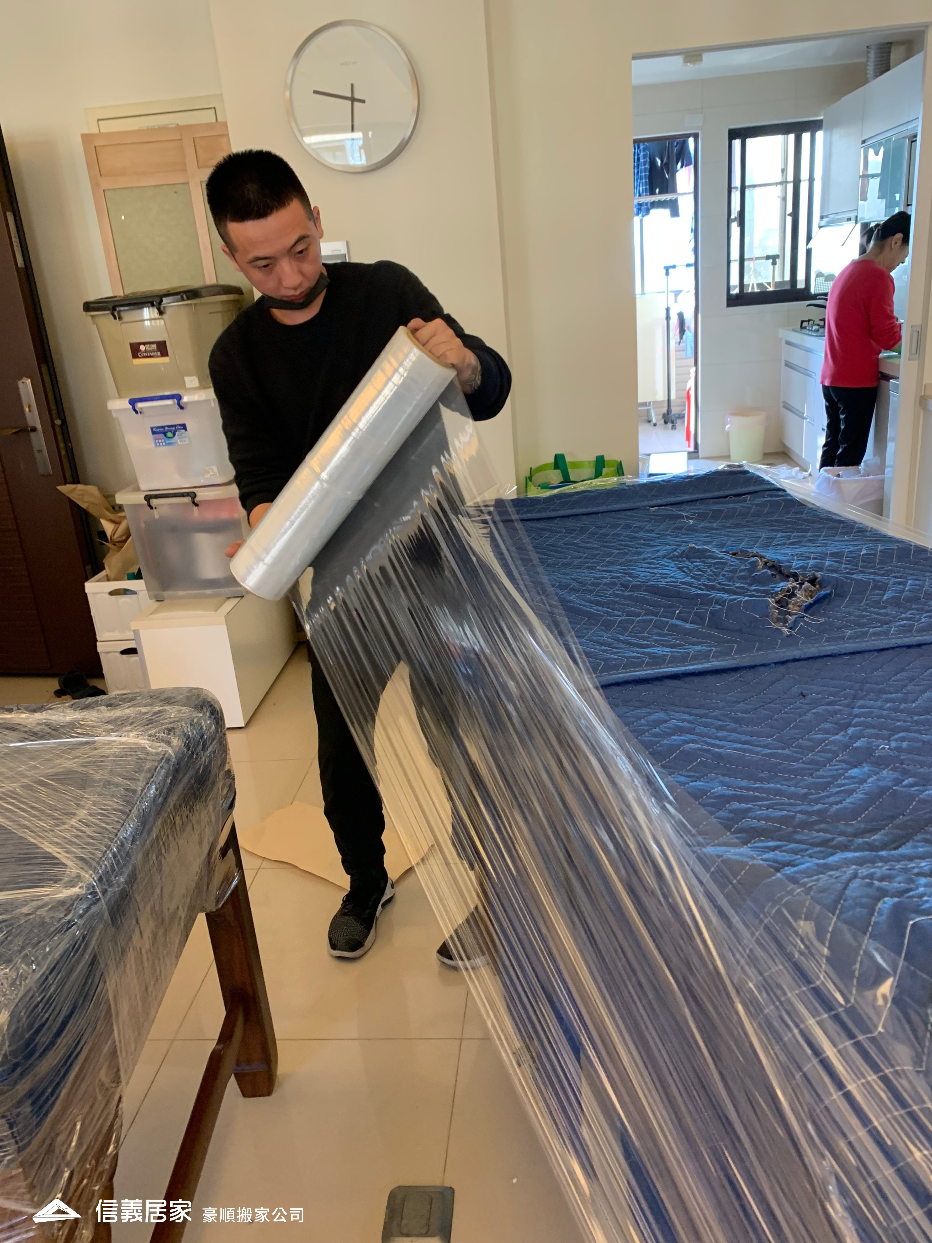 豪順搬家在搬運前會先將需要保護的家具家電,使用PE膠膜及保護毯做基本的防護。