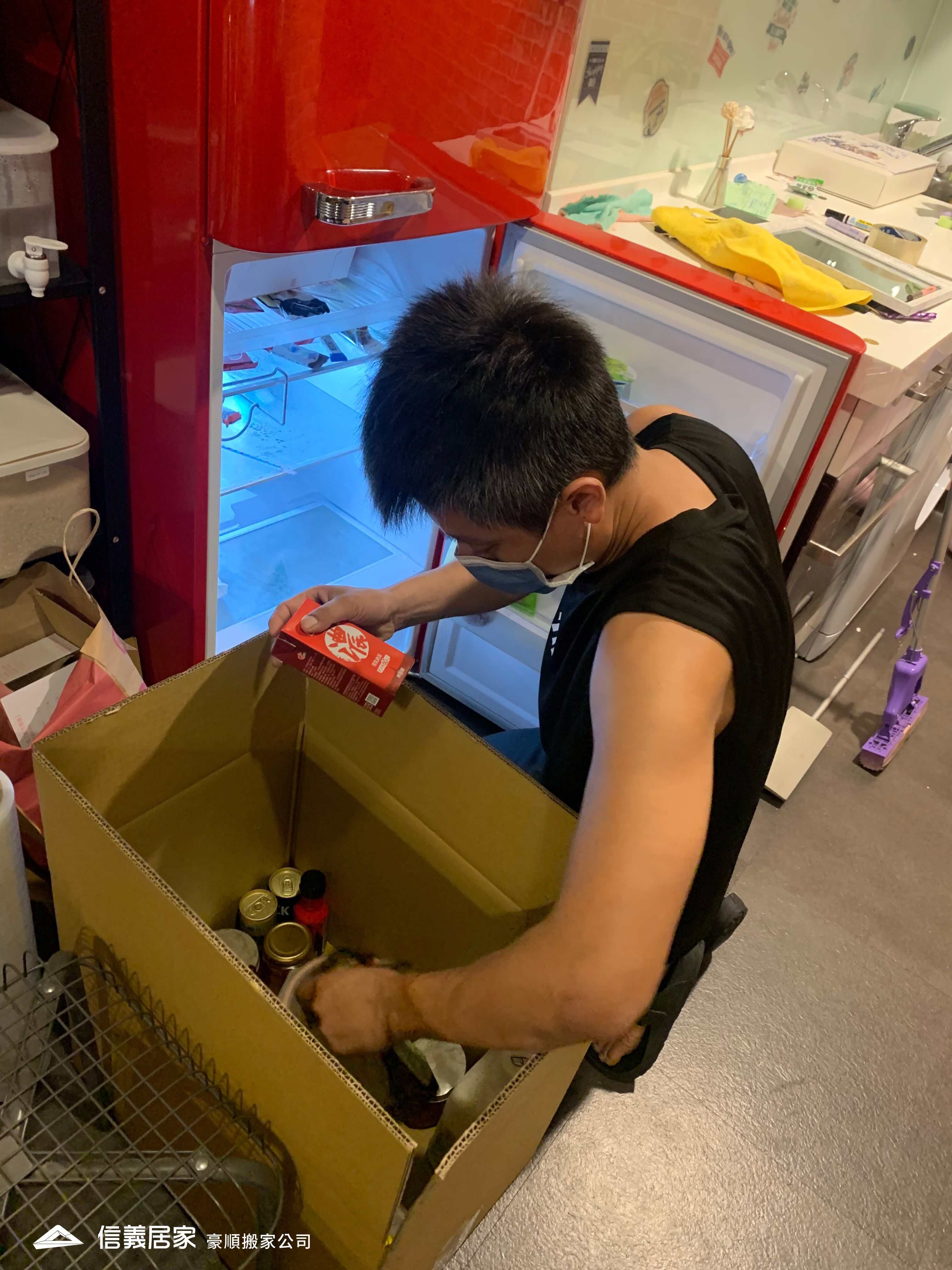 冷藏冷凍物品會建議客戶準備保冷箱袋,再由豪順搬家協助打包,或使用搬家專用厚紙箱打包。裝箱完成後在紙箱上註記分類名稱,集中搬運。