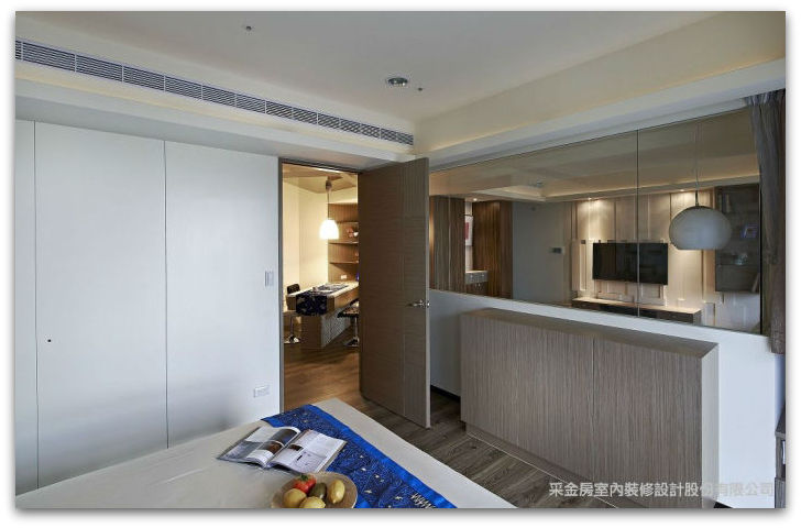 ▲玄關的衣物收納櫃面貼大片的落地明鏡,兼具實用及視覺效果的。