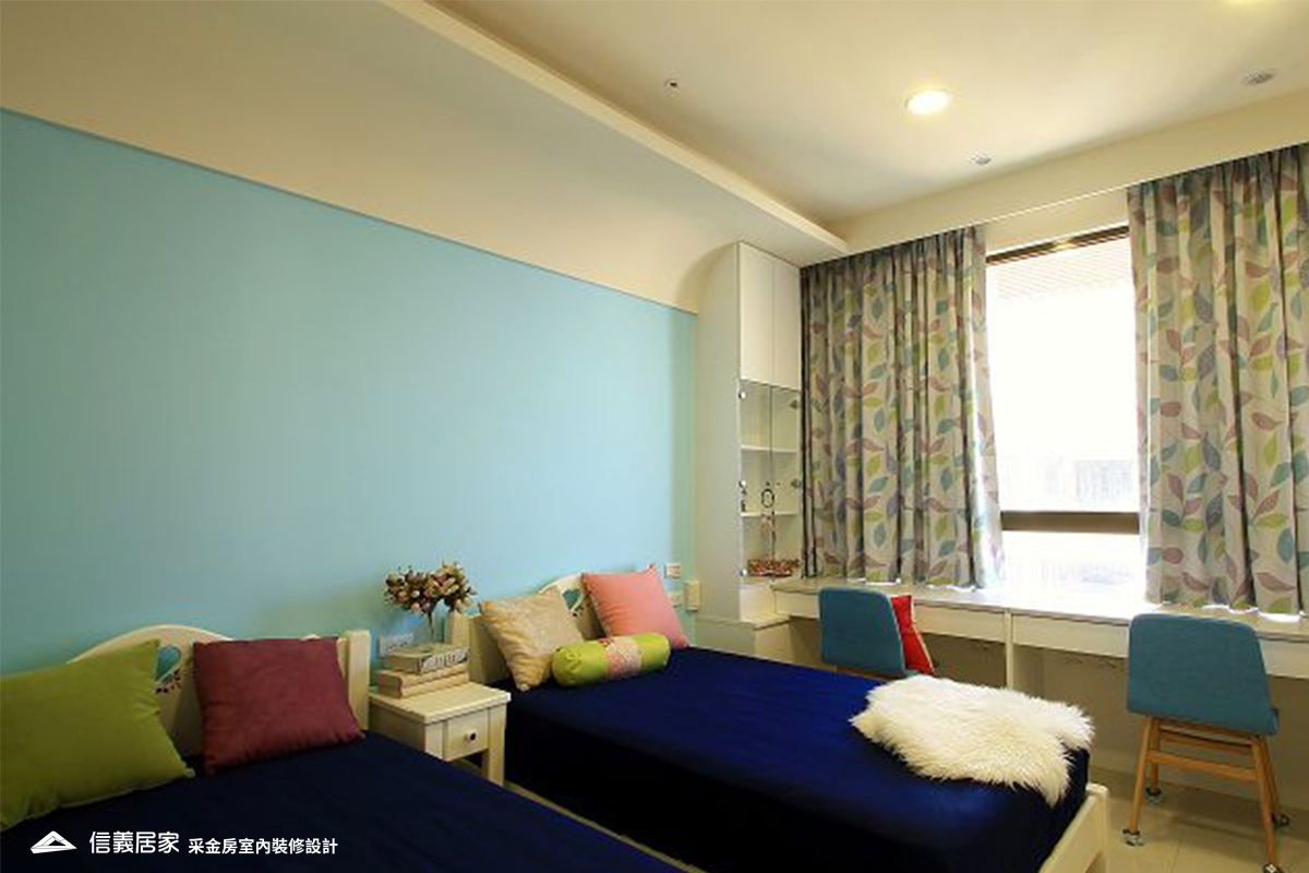 兩個小男孩的房間,則用天空藍當主牆色彩,打造簡單寧靜、卻不失溫馨的北歐混搭風。
