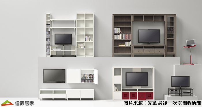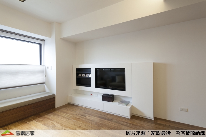 如果除了電視本身,還有基礎的影音播放器或者其他小巧設備,則要借用附近的櫃體,或是獨立電視牆後方做借位收納。