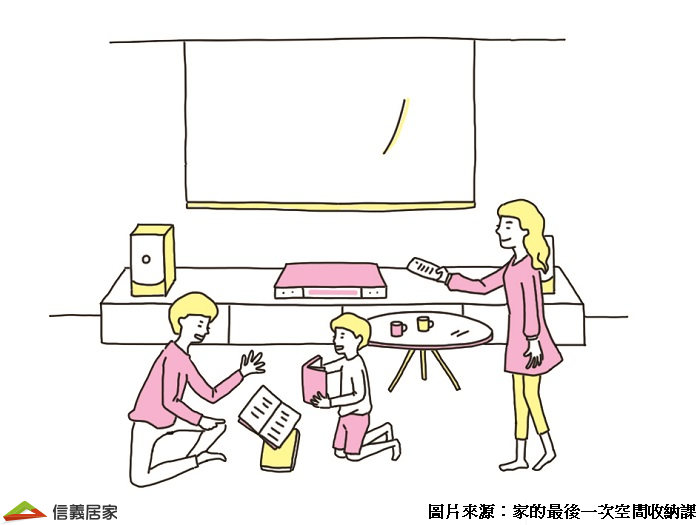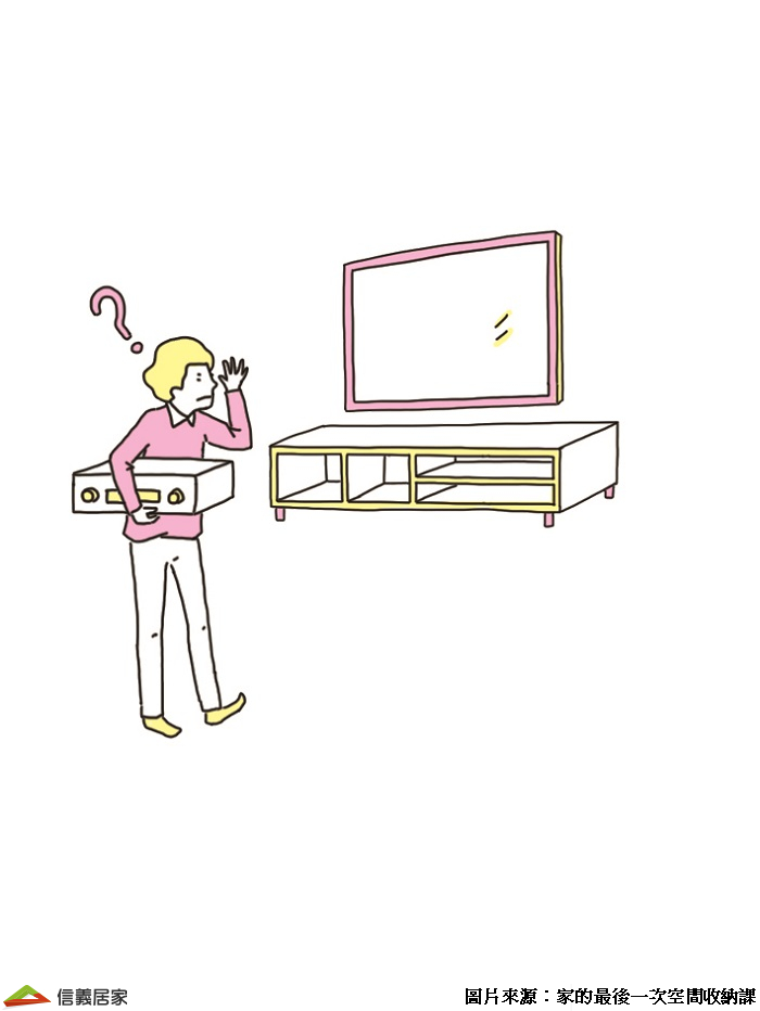 視聽設備和線路是客廳收納的主要重點,如果地上佈滿了設備的電線,不但看起來亂,居家安全也堪慮。在製作電視櫃時,應先決定好電視及各式設備,確定尺寸之後再設計櫃子,量身訂做才能收放得剛剛好,反之則容易一團混亂。