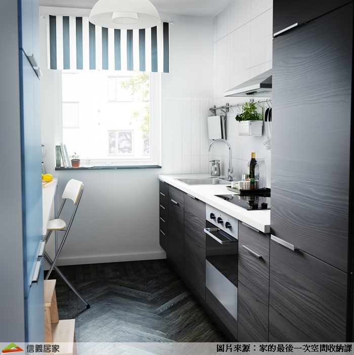 一字型廚房通常適用於小坪數,礙於空間有限,只能利用一排廚具解決吃的需求,或是飲食傾向輕食的族群,因為料理方式簡單,不需要太大空間滿足煎煮炒炸等多元烹飪方式,也很適合此類型廚房。