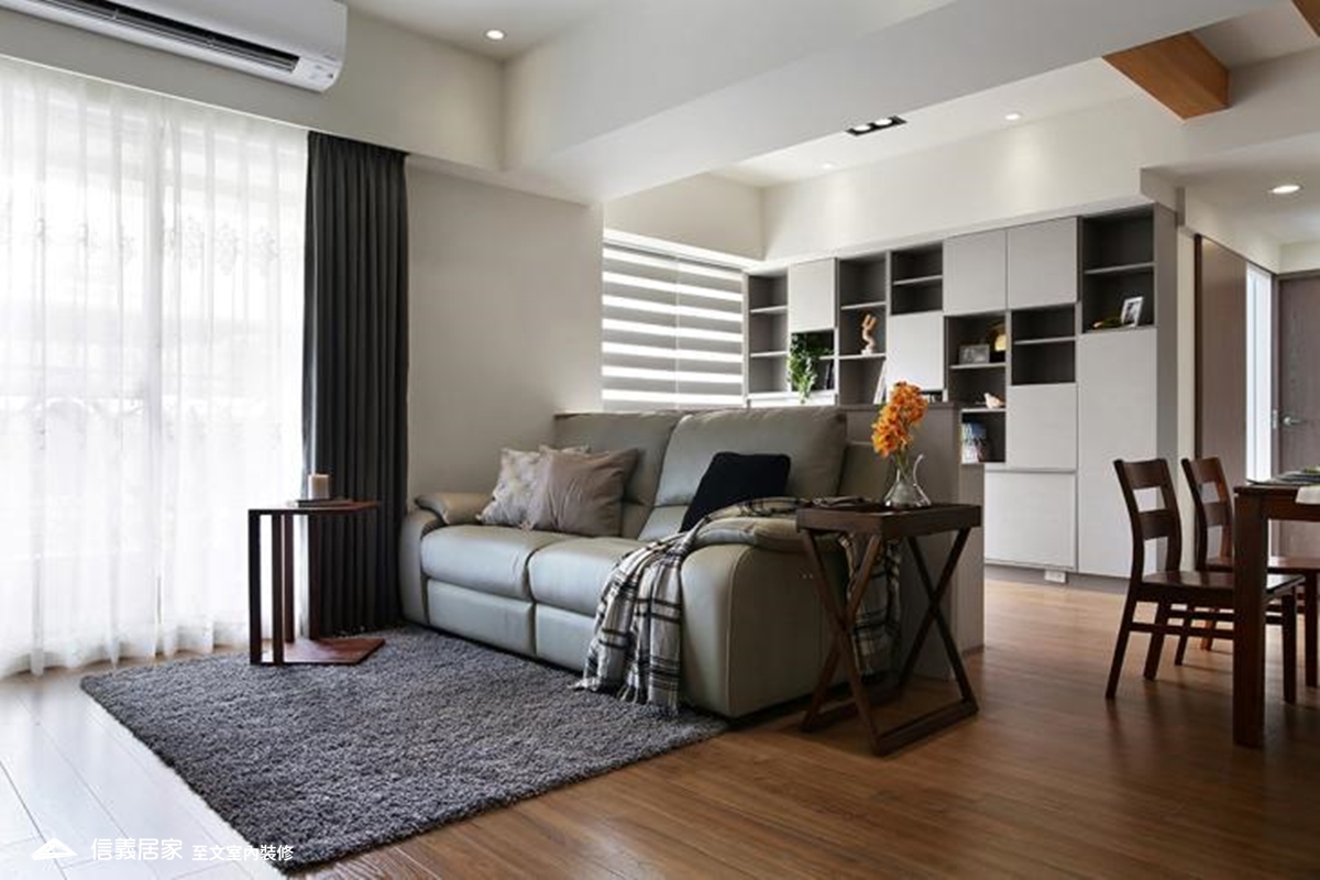 屋主考慮到將來與長輩同住,有了換屋的念頭;在信義房屋的協助下,找到了一個符合需求的物件──採光好、通風佳、公設比低且有電梯的小宅,將老屋改造成時尚風格的全齡通用住宅。