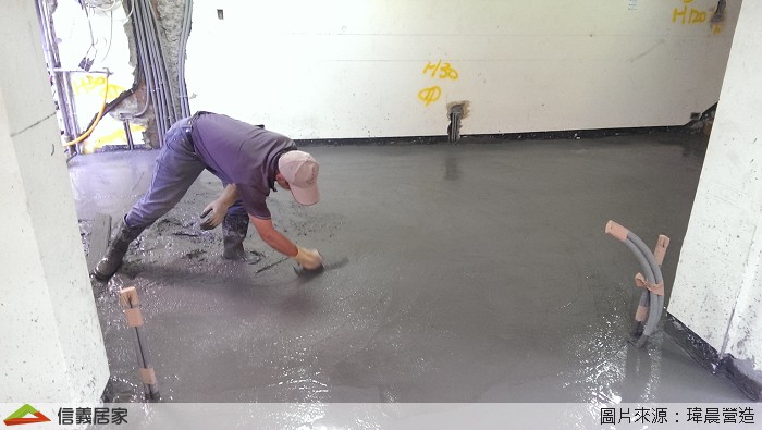 接下來就是把混凝土灌入地坪後請師傅把混凝土面整順,等待乾燥之後再進行後續的泥作工程。一般的泥作工程大家都常看到,我們就不再贅述了,簡單用照片介紹一下!