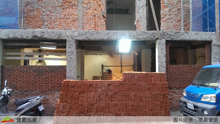 準備施工材料及砌紅磚,砌磚完成後,鋁窗廠商就可以進場立窗框及門框。